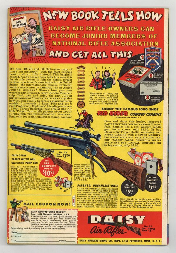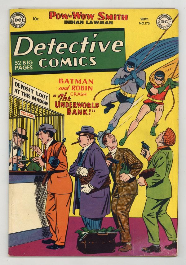 Cover by Win Mortimer. Stories by unknown. Art by Dick Sprang, Stan Kaye, Leonard Starr, Frank Bolle, Ruben Moreira, Carmine Infantino and John Belfi. Batman and Robin crash..."The Underworld Bank!" with art by Dick Sprang and Stan Kaye. Plus: Pow-Wow Smith, Indian Lawman in "The Wampum Wigwam" with art by Leonard Starr; Robotman in "The Boy Who Re-Made Robotman!" with art by Frank Bolle; Impossible -- But True! tale "The Ghost of Station WBT!" (featuring Roy Raymond) with art by Ruben Moreira; and 2-page story "The Taming of the Wild Bunch!" with art by Carmine Infantino and John Belfi. Also: Cartoon Criss-Cross activity page by Martin Naydel; 2-page text piece "Our Footsore Nation"; Peg 1-pager by Henry Boltinoff; and Quick Quiz activity page by H.T. Elmo. 52 pages, full color. Cover price $0.10.