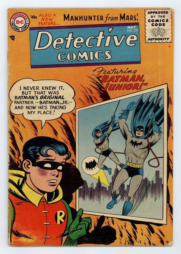 Tags: Batman$208.00Batman, Junior starring Batman and Robin, script by Edmond Hamilton, pencils by Sheldon Moldoff (as Bob Kane), inks by Charles Paris. Get Your Ticket to the Treasury of Books! public service announcement starring Superman, script by Jack Schiff, art by Winslow Mortimer. The Mystery of the Brain-Exchanger starring Roy Raymond TV Detective, art by Ruben Moreira. The Thief Who Had Super Powers! starring John Jones Manhunter from Mars, art by Joe Certa. Casey the Cop humor page by Henry Boltinoff. 36 pgs. $0.10. Cover price $0.10.