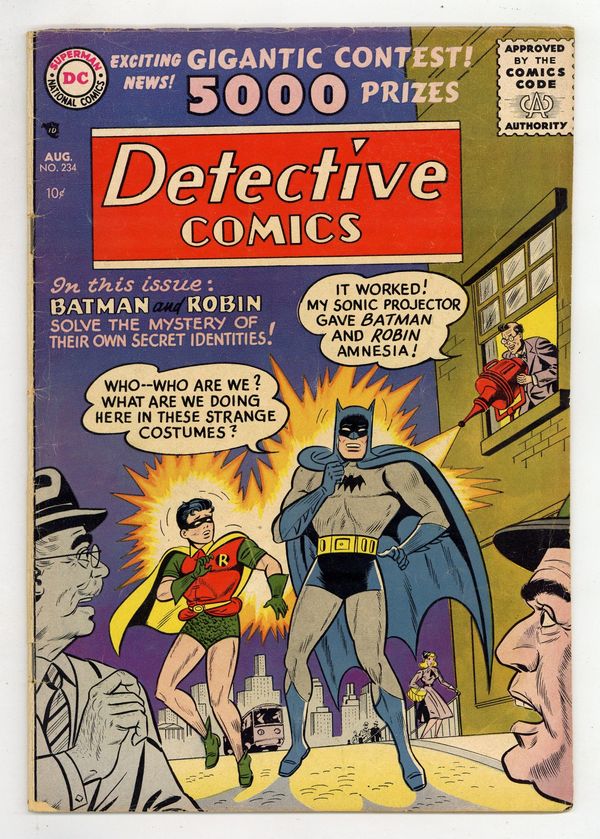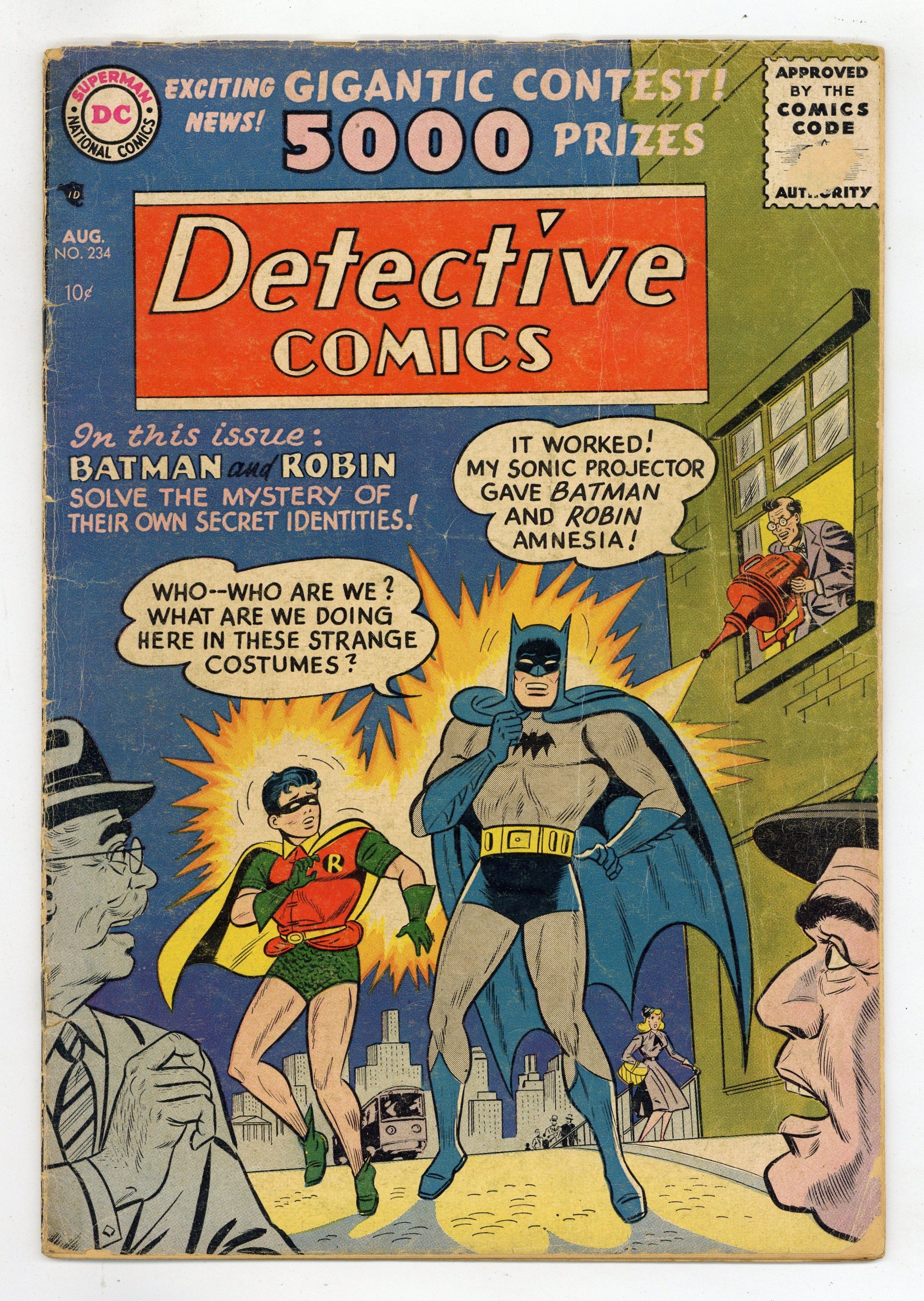 Cover art by Sheldon Moldoff. Batman and Robin's Greatest Mystery, script by Edmond Hamilton, pencils by Sheldon Moldoff, inks by Stan Kaye. The Case of the Careless Camper! public service announcement starring Peter Porkchops, script by Jack Schiff, art by Win Mortimer. The Man Who Hid His Powers starring Roy Raymond TV Detective, art by Ruben Moreira. Cracking the Safe-Crackers article by Jack Miller. The Martian Convict starring John Jones Manhunter from Mars, art by Joe Certa. 36 pgs. $0.10. Cover price $0.10.
