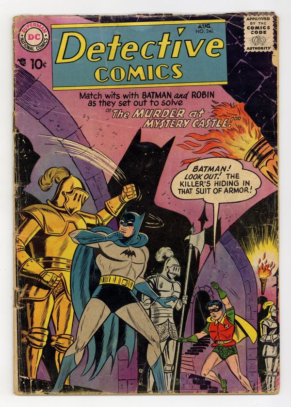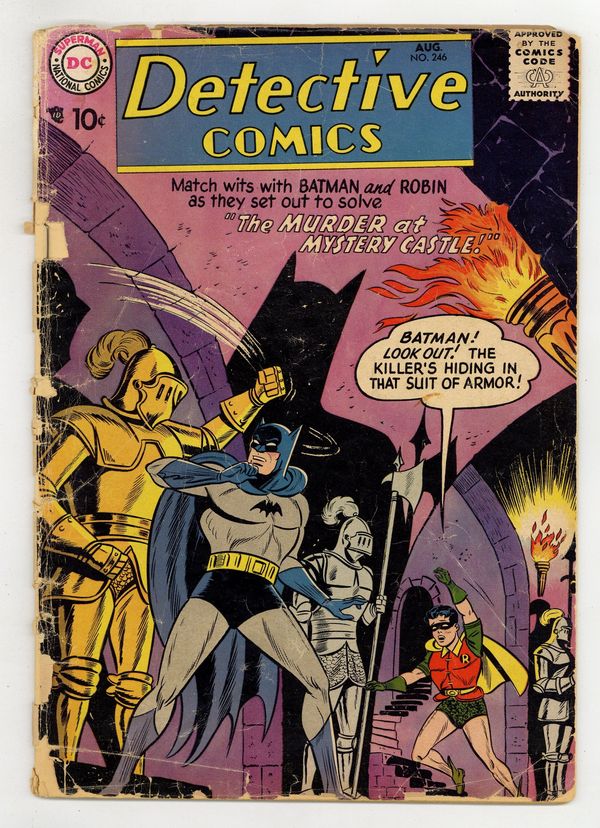 Cover art by Sheldon Moldoff. Murder at Mystery Castle starring Batman and Robin, script by Bill Finger, pencils by Sheldon Moldoff, inks by Charles Paris. Earn While You Learn! public service announcement, art by Ruben Moreira. Casey the Cop humor page by Henry Boltinoff. The Man With the Magic Camera starring Roy Raymond TV Detective, script by Jack Miller, art by Ruben Moreira. Warden Willis humor page by Henry Boltinoff. Introduction of Diane Meade in John Jones' Female Nemesis starring John Jones Manhunter from Mars, script by Jack Miller, art by Joe Certa. 36 pgs. $0.10. Cover price $0.10.