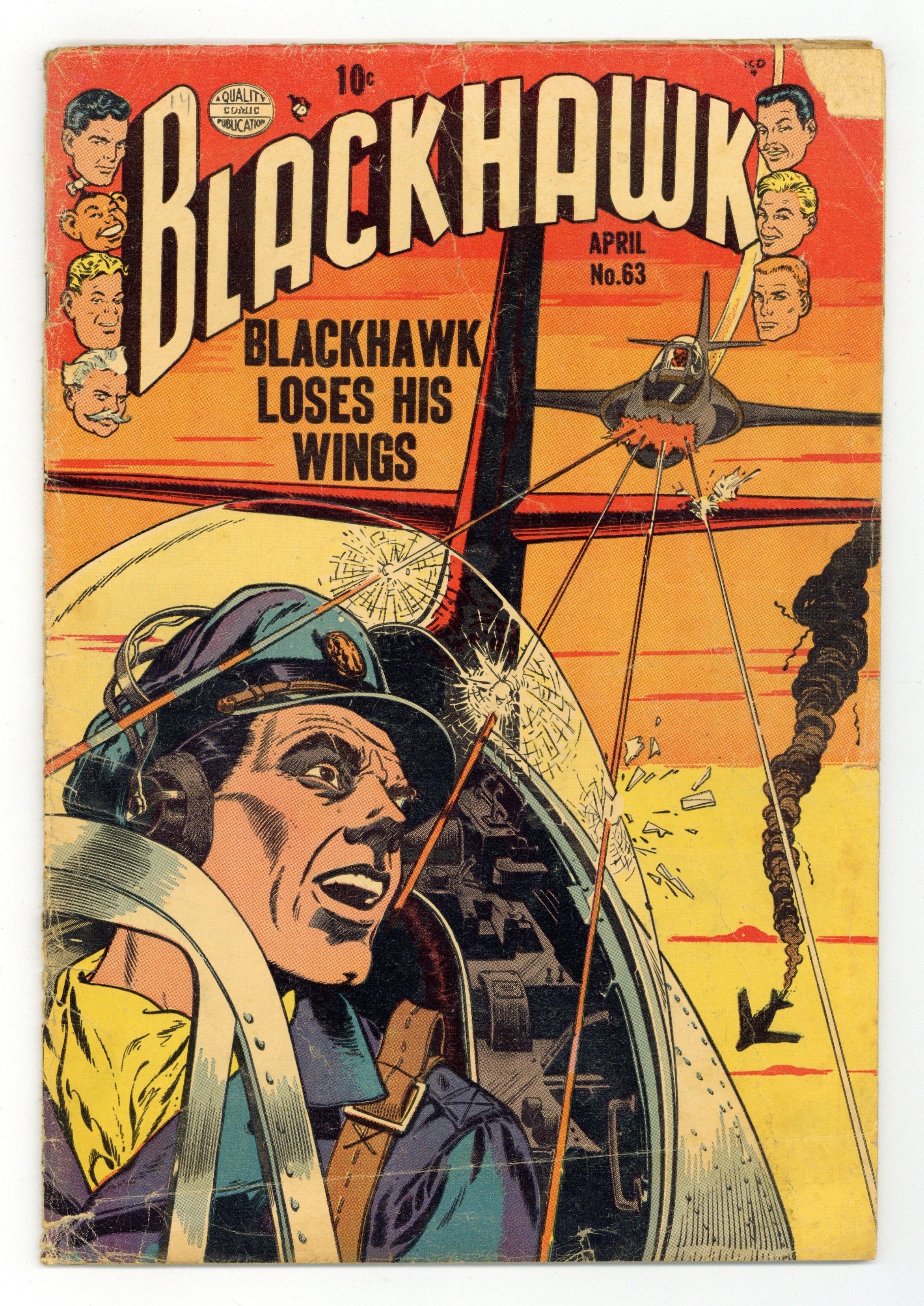 Cover by Reed Crandall. Stories by Paul Gustavson and unknown. Art by Paul Gustavson, Reed Crandall, Bill Ward and unknown. Featuring Blackhawk in: "The Attack to End the World" with art by Reed Crandall; "The Flying Buzz-Saws" with art by Bill Ward; "Blackhawk Loses His Wings"; and 1-page text story "Bombs Away," reprinted from Modern Comics (1945) #94. Plus: Chop Chop in an untitled back-up story by Paul Gustavson. 36 Pages, Full Color. Cover price $0.10.