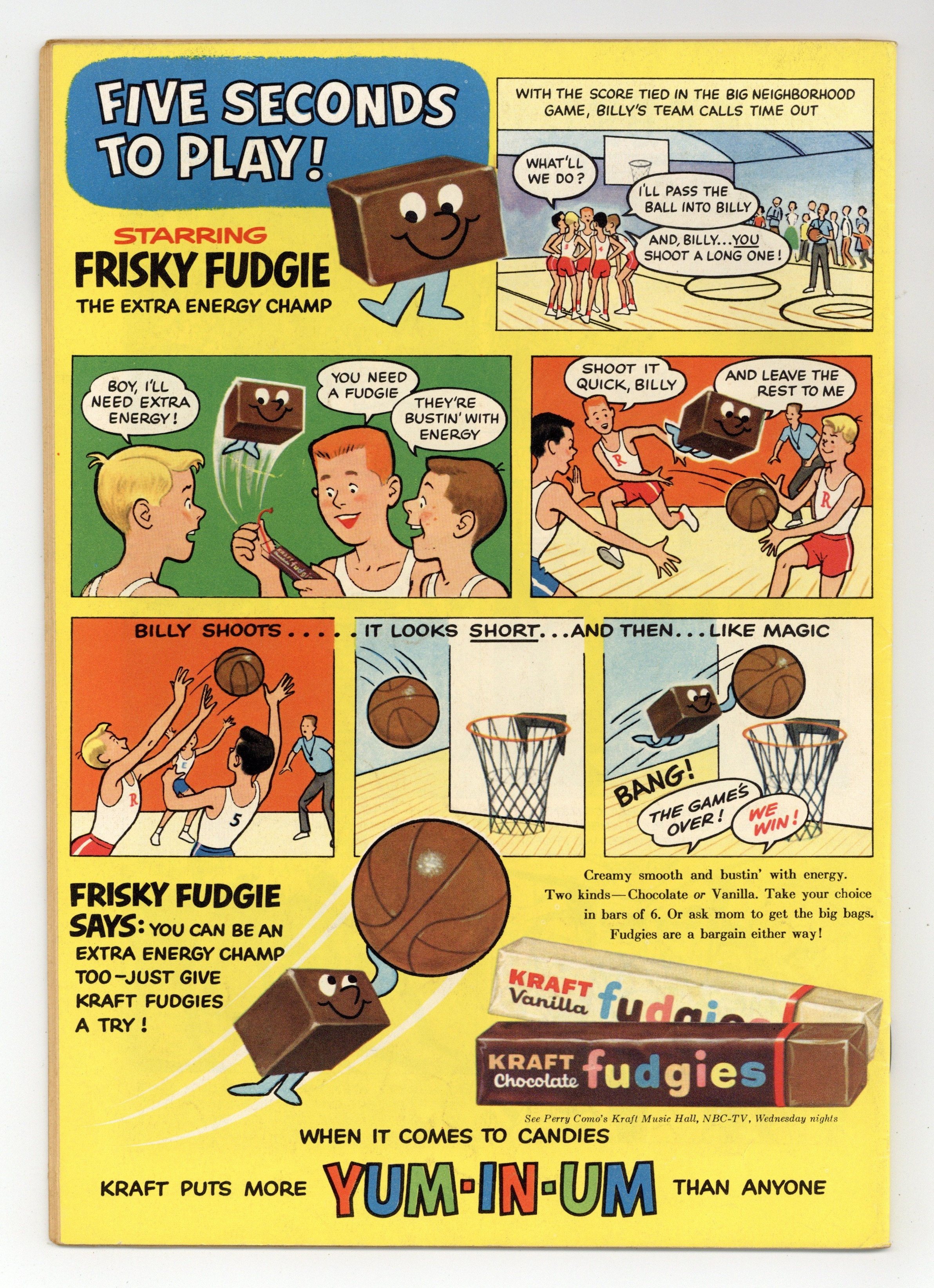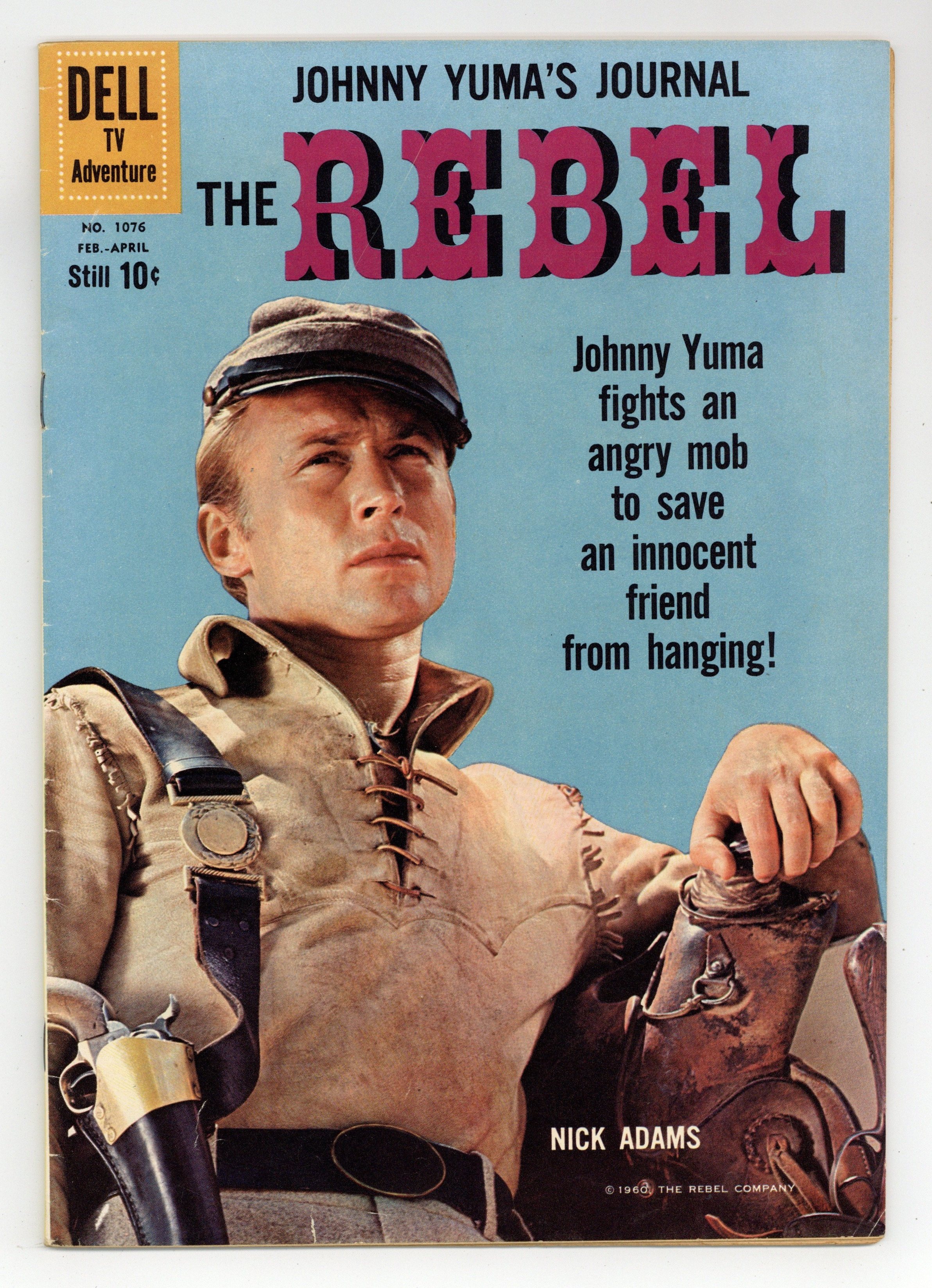 $23.00Version with ad on back cover. Indicia title is "THE REBEL, No. 1076." Photo cover of Johnny Yuma The Rebel (Nick Adams). Bad Medicine; In the summer of 1865, Confederate war veteran Johnny Yuma returns to his small western town; He finds his father, the sheriff, has been killed and the murderers are now running the town. Buzzard Bait; After saving the life of an Apache strung up to die as "buzzard bait," Yuma finds the camp of four hard-bitten gold miners whose mules have been killed by Apaches. Hoodlums Went West fact page; general overview of the problems old west towns had because they attracted drifters and hoodlums. Scripts by Gaylord Du Bois, pencils by Mike Sekowsky, inks by Mike Peppe. 36 pages, full color. Cover price $0.10.