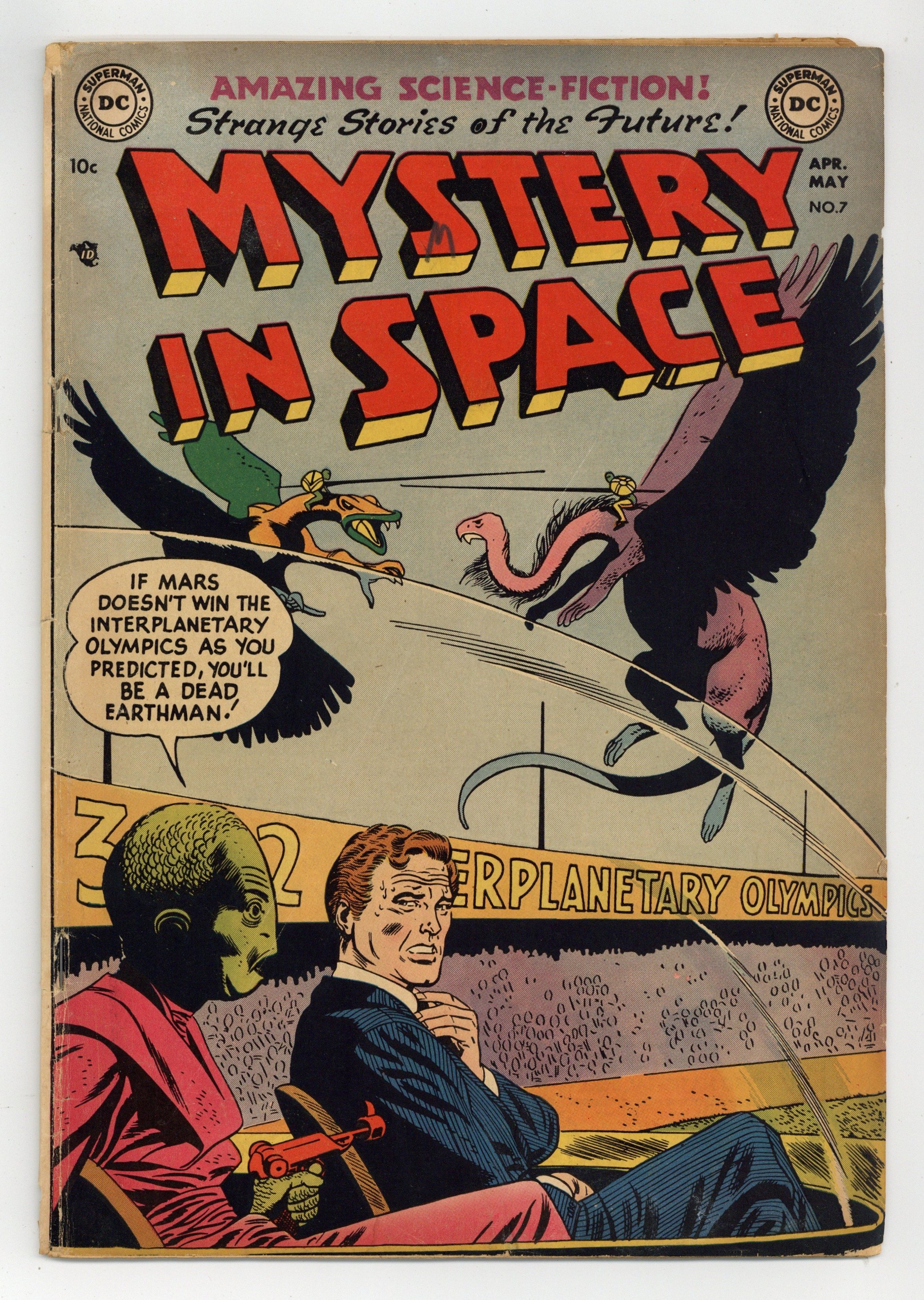 Knights of the Galaxy in "Challenge of the Robot Knight" (script by Robert Kanigher as "Dion Anthony"; pencils by Carmine Infantino?), "The Man Who Weighed 20 Tons" (script by "John Osgood"), "The Case of the Counterfeit Humans" (script by Gardner F. Fox), and "The World Where Dreams Come True" (script by "Manny Rubin"). Gil Kane cover and art. 36 Pages, Full Color. Cover price $0.10.