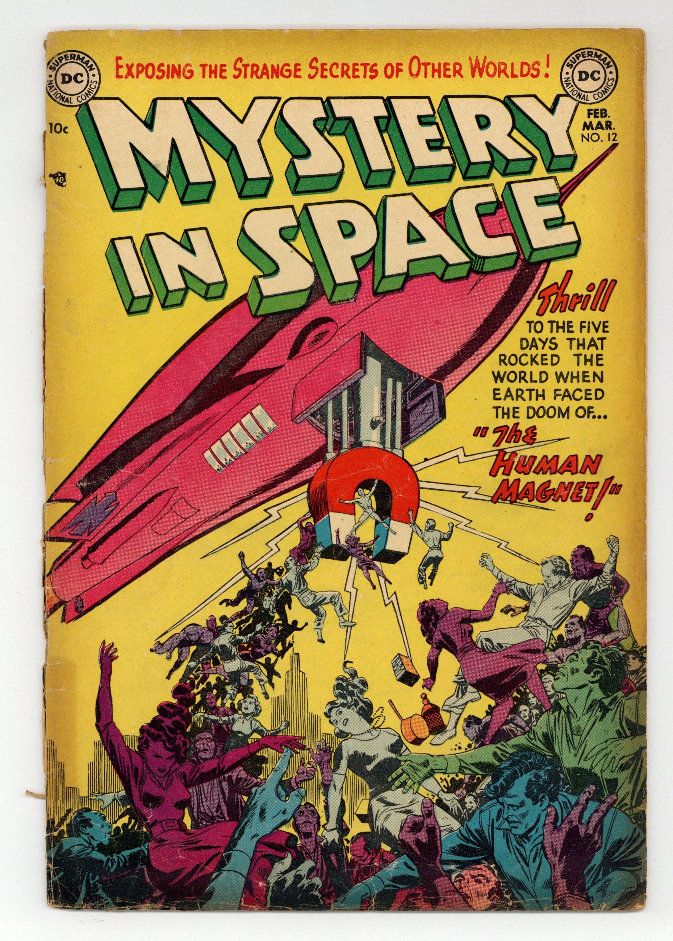 "The Sword in the Sky" (art by Murphy Anderson), "The Richest Man on 9 Planets," "The Human Mangnet" (pencils by Gil Kane), and "The Great Stone Faces on the Moon!" Superboy stars in a one-page public service announcement, "The Holiday Spirit." Ruben Moreira cover? 36 Pages, Full Color. Cover price $0.10.