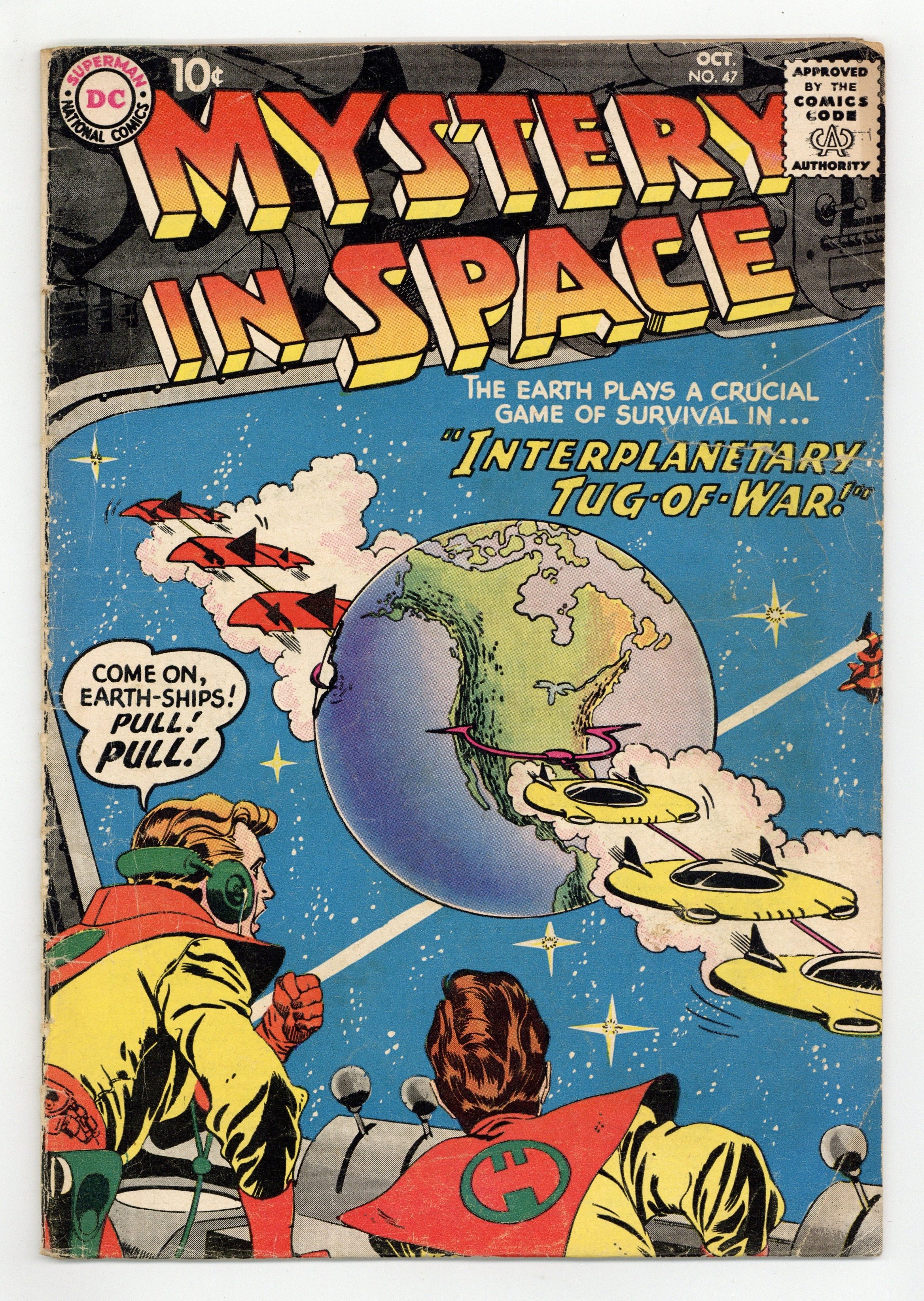 "Interplanetary Tug of War"; "The Surprise Package Planet!" (art by Murphy Anderson); and "The Riddle of the Rival Space-Cabbies!" (pencils by Gil Kane). Kane cover. 36 Pages, Full Color. Cover price $0.10.