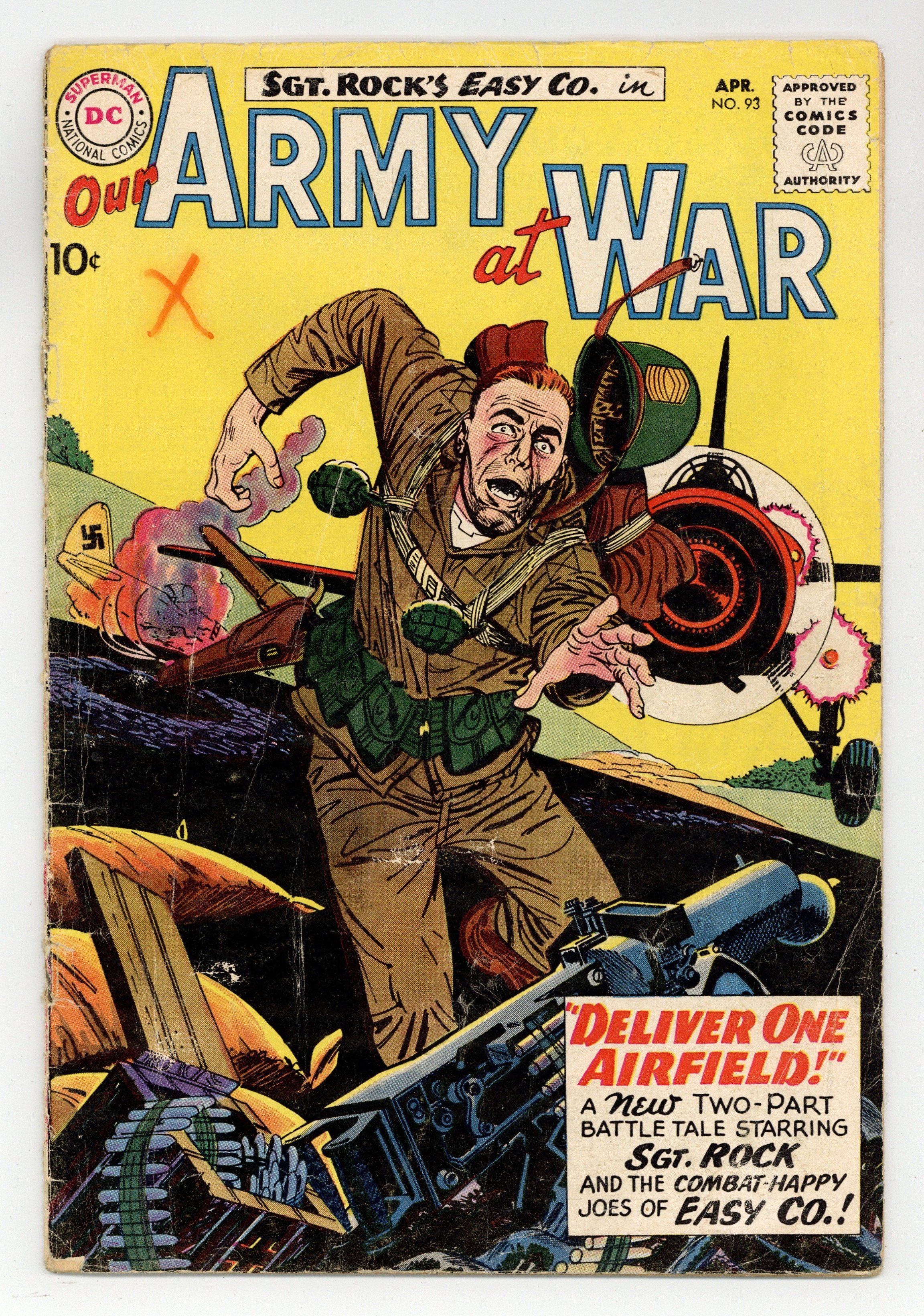 Cover art by Jerry Grandenetti. Deliver One Airfield starring Sgt. Rock, script by Bob Kanigher, art by Joe Kubert. Army Almanac. Nightmare Jet, script by Bob Haney, art by Russ Heath. The Comeback Tank, script by Bob Haney, art by Jerry Grandenetti. 36 Pages, Full Color. Cover price $0.10.