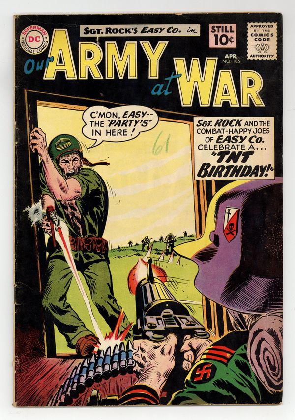 Cover art by Jerry Grandenetti. TNT Birthday starring Sgt Rock, script by Bob Kanigher, art by Joe Kubert. No Home For A Frogman, script by Bob Haney, art by Jack Abel. Double Bait, script by Bob Haney, art by Jack Abel. 36 Pages, Full Color. Cover price $0.10.