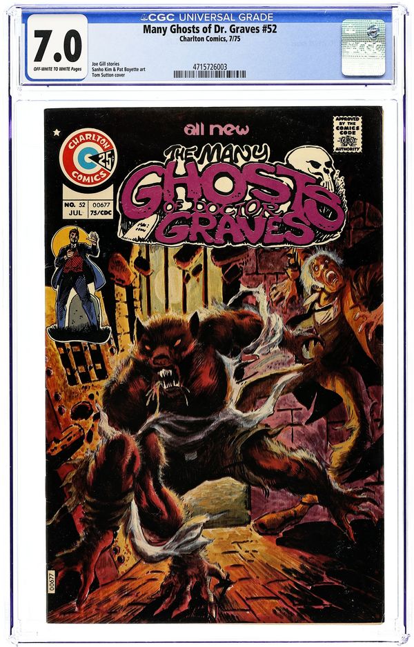 Cover by Tom Sutton. Stories and art by Steve Ditko, Sanho Kim, Joe Gill, and Pat Boyette. Ghost hunter Dr. Graves presents, and sometimes participates in, tales of ghosts, monsters and the supernatural. A genteel mugger learns he's not the only thing stalking the London night. Cruel Captain Cobb forces the African Zuligi tribe into servitude - but luckily, they have voodoo on their side. Thomas is cruel to his redheaded wife and the servants, but the servants ALSO have voodoo on their side, in a story with art by Spider-Man co-creator Steve Ditko. Terrific werewolf cover by Tom Sutton. Evil Prowls the Night; Satan Is Free; A Little of This - A Little of That! 32 pages, Full Color. Cover price $0.25.