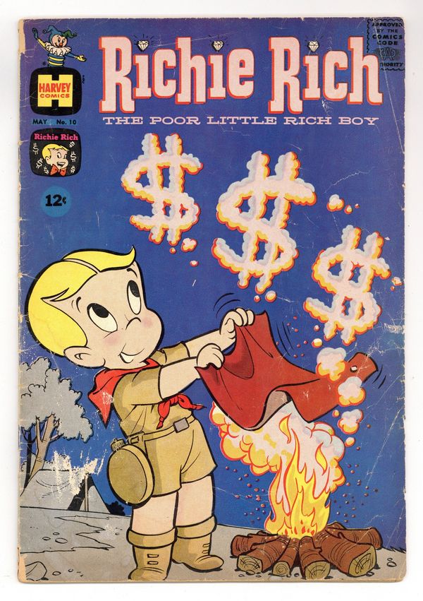 Richie Rich stars in The Convertible Convertible (Uncle Bright gives Richie a car) and Richie Rich and his Uncle Spender (Richie and his uncle spend tons of money). Little Dot and Little Lotta star in Little Dot and the Wishing Well (Dot's wishes come true). Little Lotta and Gerald's dad star in Tough to be Normal (Lotta removes a tree). $0.12. 36 pgs. Cover price $0.12.
