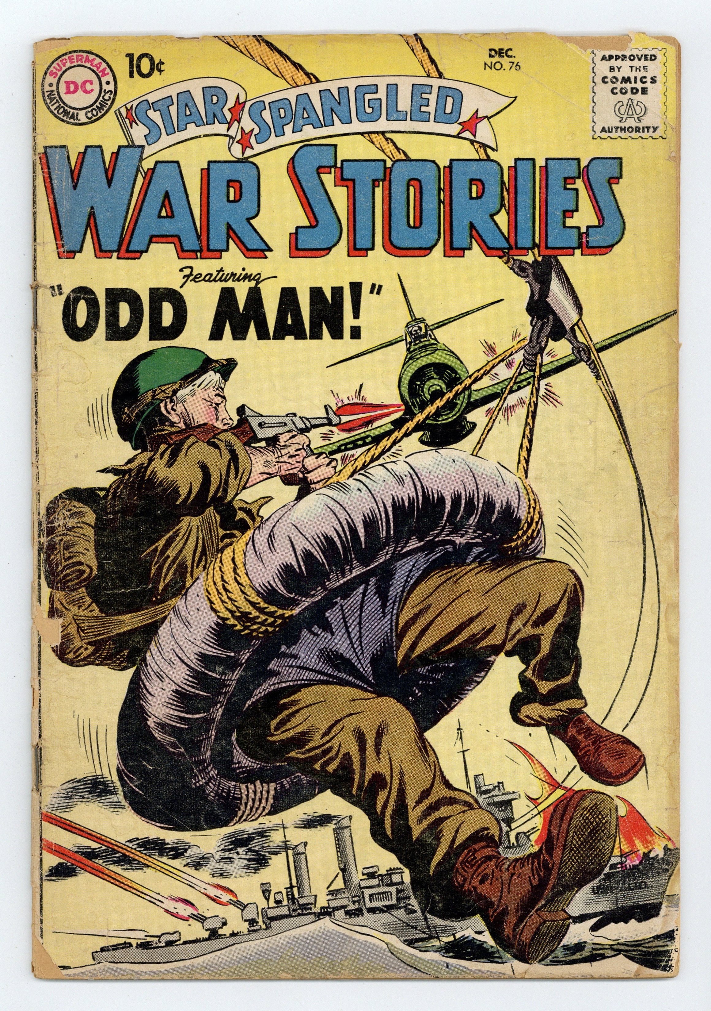 Cover art by Joe Kubert. Odd Man, script by Bob Haney, art by Mort Drucker. The Tall Order, script by Bob Haney, art by Jerry Grandenetti. Flying Pinch Hitter, script by Robert Kanigher, pencils by Ross Andru, inks by Mike Esposito. For Greater Security, script and pencils by Morris Waldinger, inks by Tom Nicolisi. 36 Pages, Full Color. Cover price $0.10.