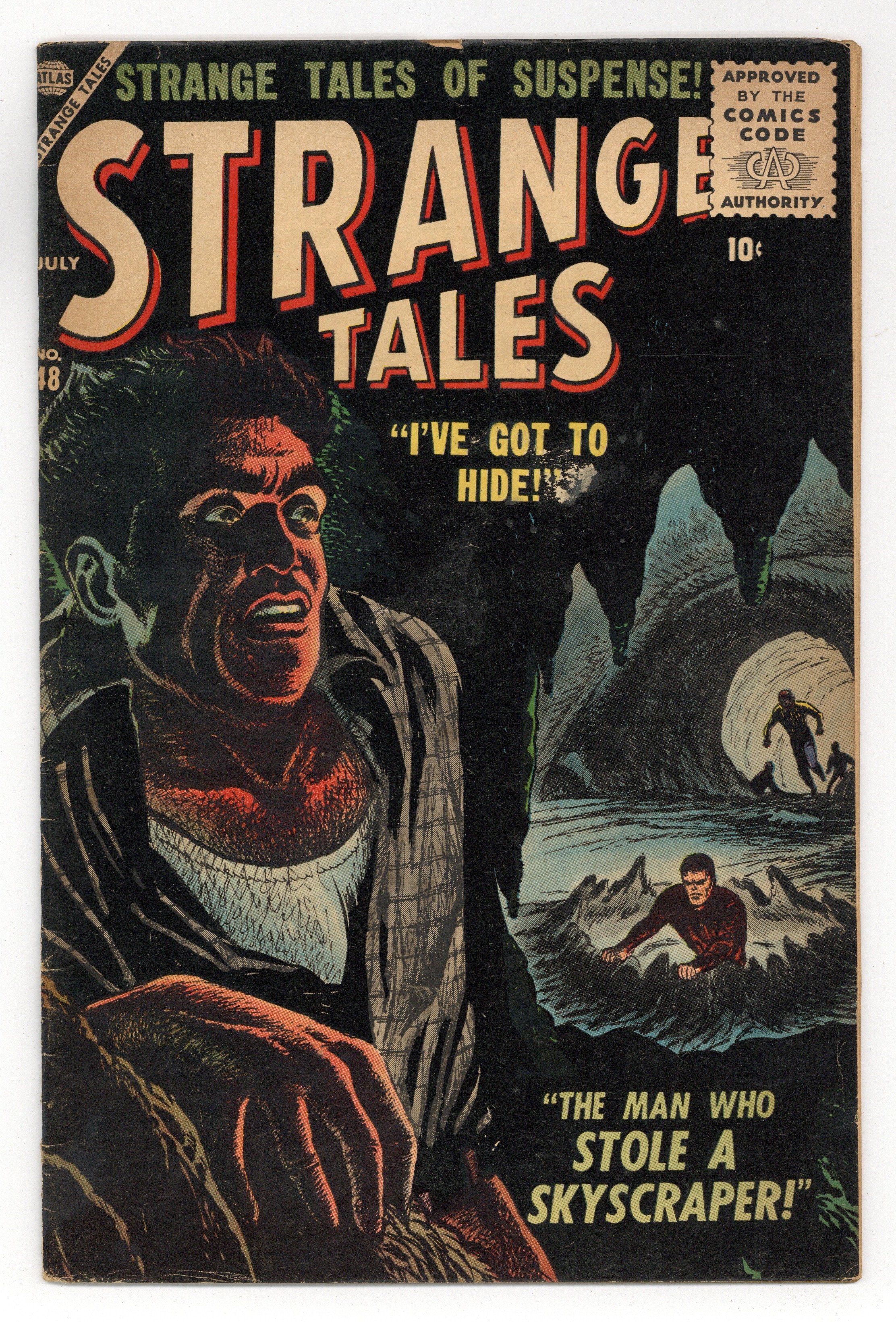The Deserted Lighthouse, pencils by Bob Forgione, inks by Jack Abel. The Man Who Stole a Skyscraper, art by Manny Stallman. The Men In Space, art by Bill Walton. I've Got To Hide, art by Mort Meskin. Muscle Man text story. Medicine Man, art by Ed Winiarski. The Last of Mr. Grimm, art by Dick Ayers. 36 pgs. $0.10. Cover price $0.10.