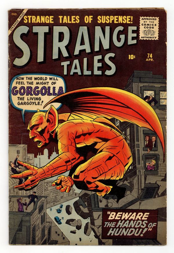 Cover pencils by Jack Kirby, inks by Dick Ayers. "Gorgolla! The Living Gargoyle!!", pencils by Jack Kirby, inks by Dick Ayers; A student finds that gargoyles are really a hidden alien race preparing to conquer the world but when their leader summons them they turn on him, having learned to appreciate humanity. "The Whirlpool of Gairloch" text story. "Beware the Hands of Hundu," art by Don Heck; A gypsy gives magic paints that make anything painted with them real to an arrogant painter; He uses them to get revenge on a lover who jilted him but eventually his ambitions lead to his death. "I Was Trapped in the Nightmare World," art by Paul Reinman; A man travels to a frightening world of dreams and is attacked by dream beings; He discovers that the dream people believe his world is the source of nightmares and that its inhabitants are imaginary. "When the Totem Walks!", art by Steve Ditko; Two convicts escape and terrorize a nearby Indian tribe; The chieftain defends his tribe by using his magic to bring a totem pole to life to chase the two all the way back to prison. 36 pgs., full color. Cover price $0.10.