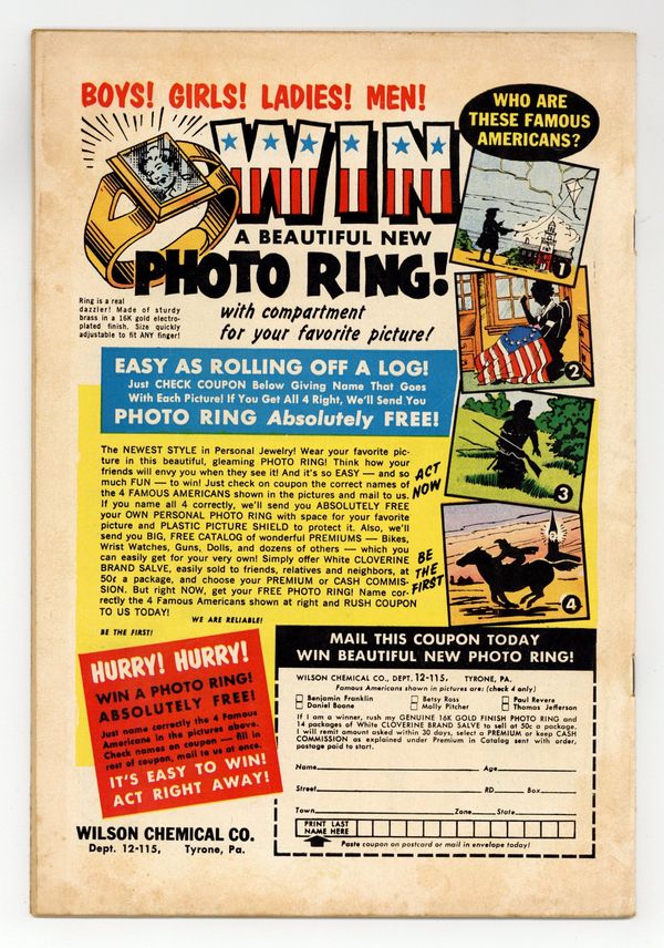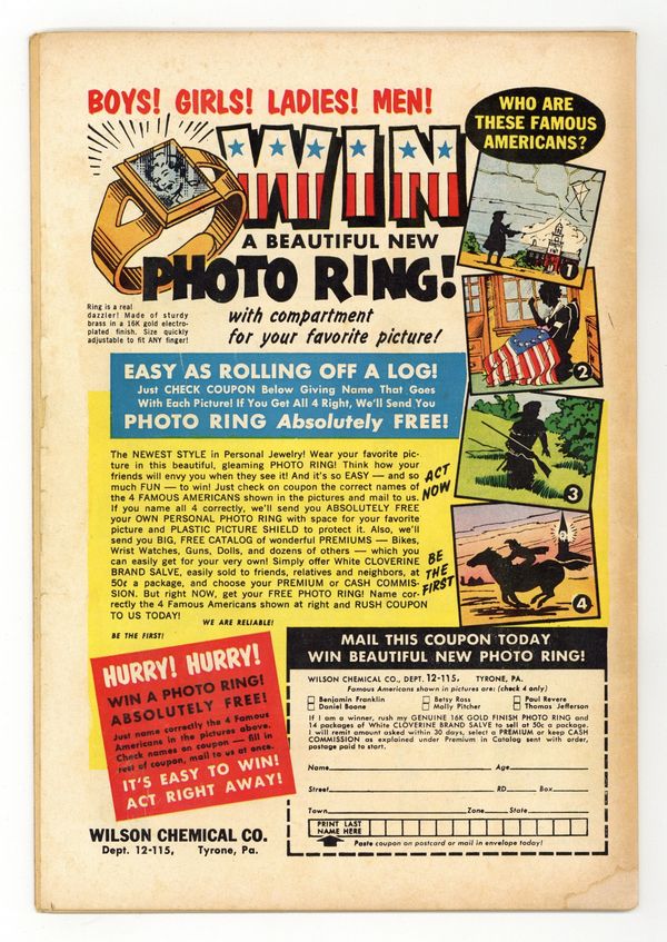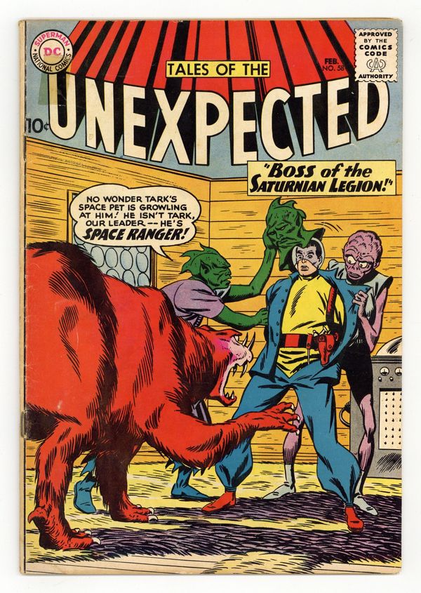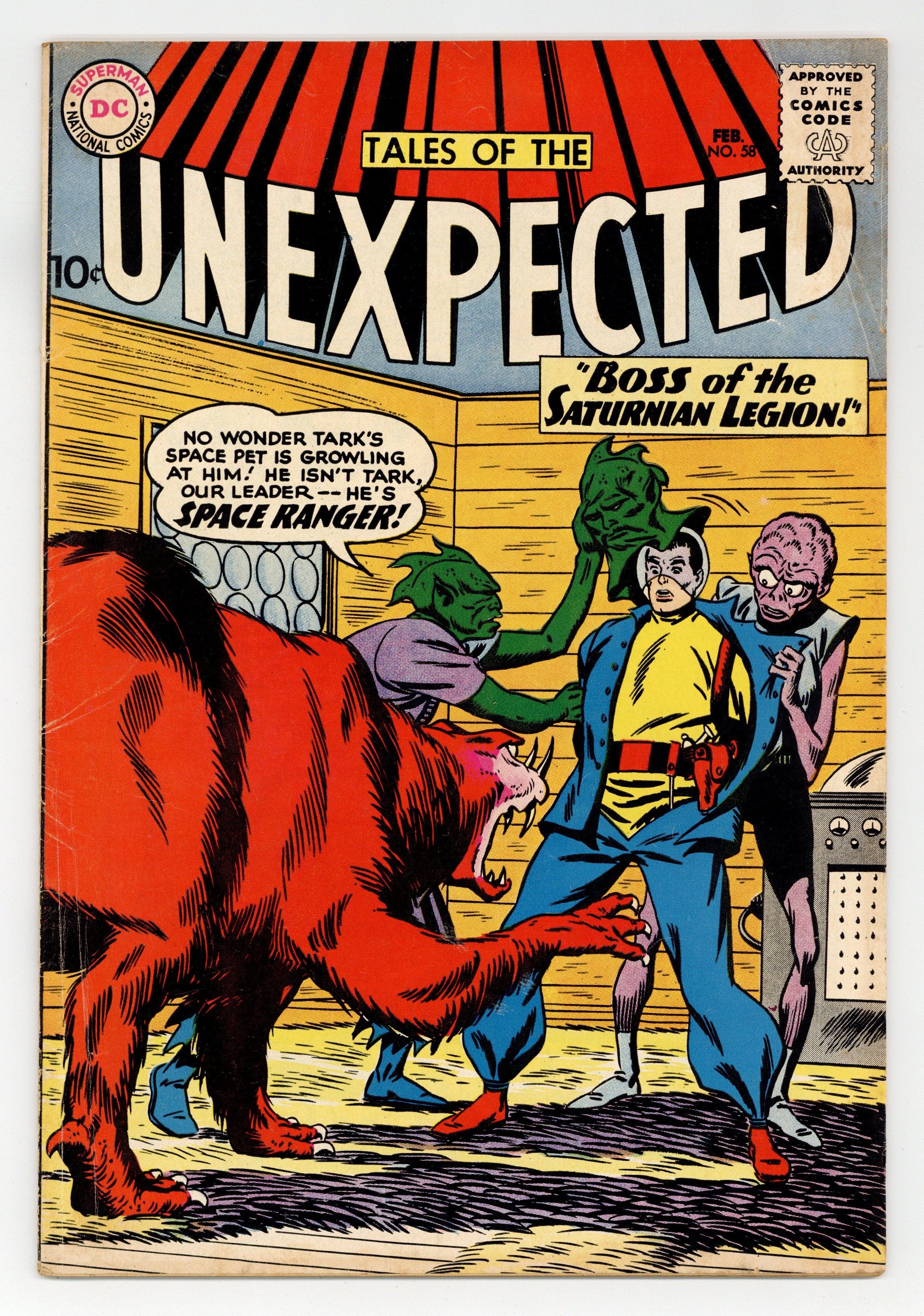 Cover art by Bob Brown. The Boss of the Saturnian Legion, script by Arnold Drake, art by Bob Brown; Space Ranger poses as alien leader Tark. Dr. Floogle humor page by Henry Boltinoff. Our American Heritage public service announcement, script by Jack Schiff, art by Bernard Baily. The Planet That Cried Wolf, art by Nick Cardy. The Man Who Stole the Sun text story. The Amazing Lunar Lab, art by George Roussos. Statement of ownership--average paid circulation, 192,000. 36 Pages, Full Color. Cover price $0.10.