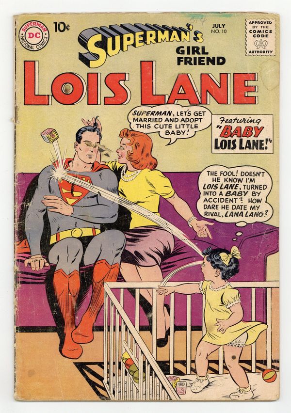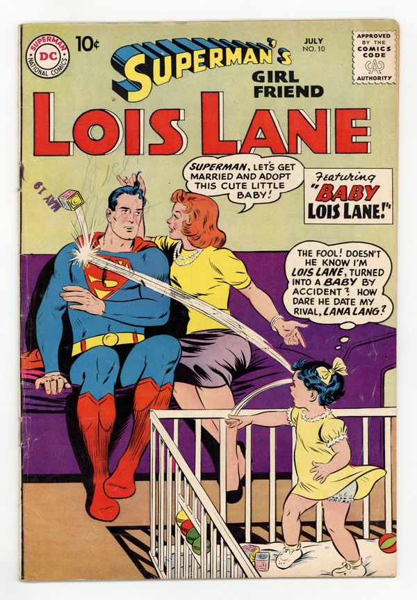 Cover pencils by Curt Swan, inks by Stan Kaye. The Cry-Baby of Metropolis!, script by Robert Bernstein, art by Kurt Schaffenberger; Lois uses Professor Lockhart's youth ray to reverse her natural aging process. House ad for A Date with Judy #71. Lois Lane's Romeo!, script by Robert Bernstein, art by Kurt Schaffenberger; Lois falls for an Italian artist who is trying to trap an American woman into marriage to obtain U.S. citizenship. Sgt. Route-Step O'Malley humor page by Irwin Hasen. Lois Lane's Super-Seance!, pencils by Wayne Boring, inks by Stan Kaye; Superman convinces everybody Lois is a real mystic and can speak to the dead. 36 Pages, Full Color. Cover price $0.10.