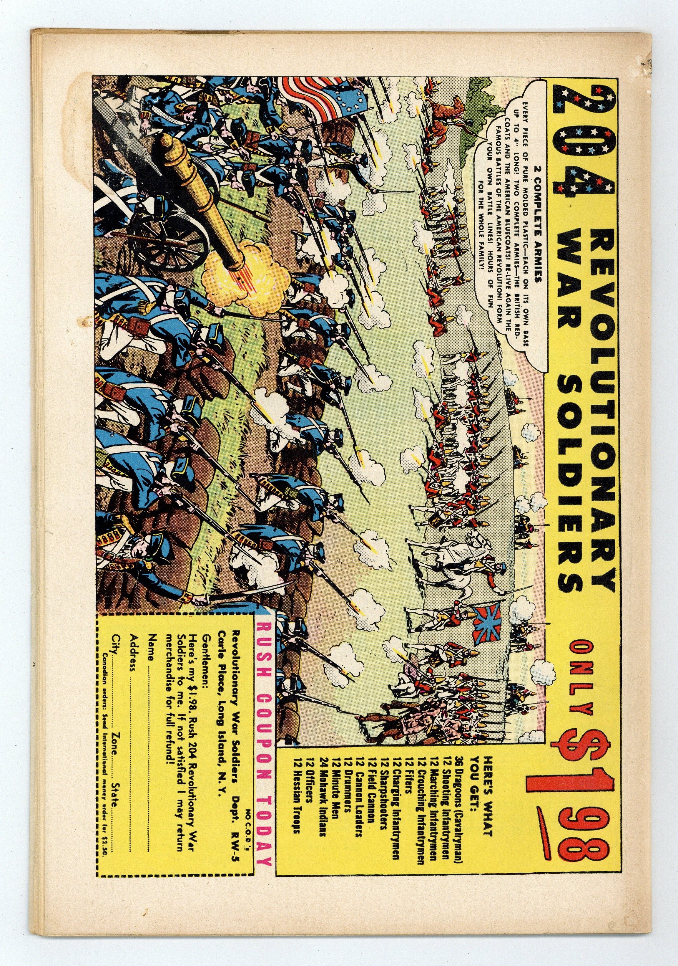 $19.00- 3" tear from bottom. 1 1/2" lateral spine tears. Tape along staples and spine. Centerfold detached at one staple. Water damage.