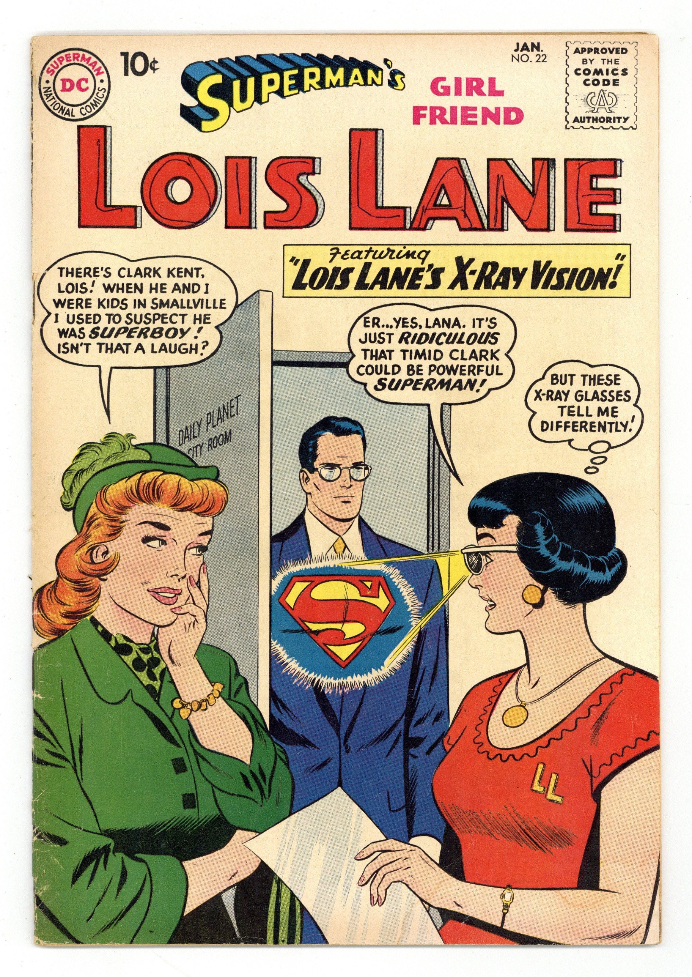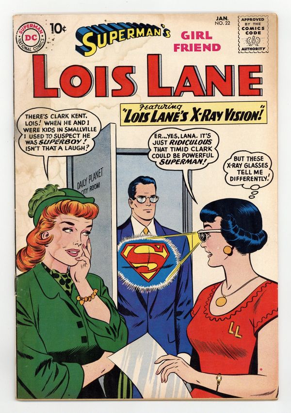 Cover pencils by Curt Swan, inks by Stan Kaye. The Day When Superman Proposed!, script by Jerry Siegel, art by Kurt Schaffenberger; After accidental exposure to Red Kryptonite Superman proposes to Lois Lane. Cora the Car Hop story by Henry Boltinoff. House ad for Superman Annual #2. Lois Lane's X-Ray Vision!, script by Robert Bernstein, art by Kurt Schaffenberger; An accident causes Lois' glasses to become X-Ray glasses. Sweetheart of Robin Hood!, art by Kurt Schaffenberger; Lois and Clark are in England covering the opening of the Robin Hood Museum when Lois scratches herself on a poisoned arrow, causing her to faint and dream of living in Robin Hood's time. 36 Pages, Full Color. Cover price $0.10.