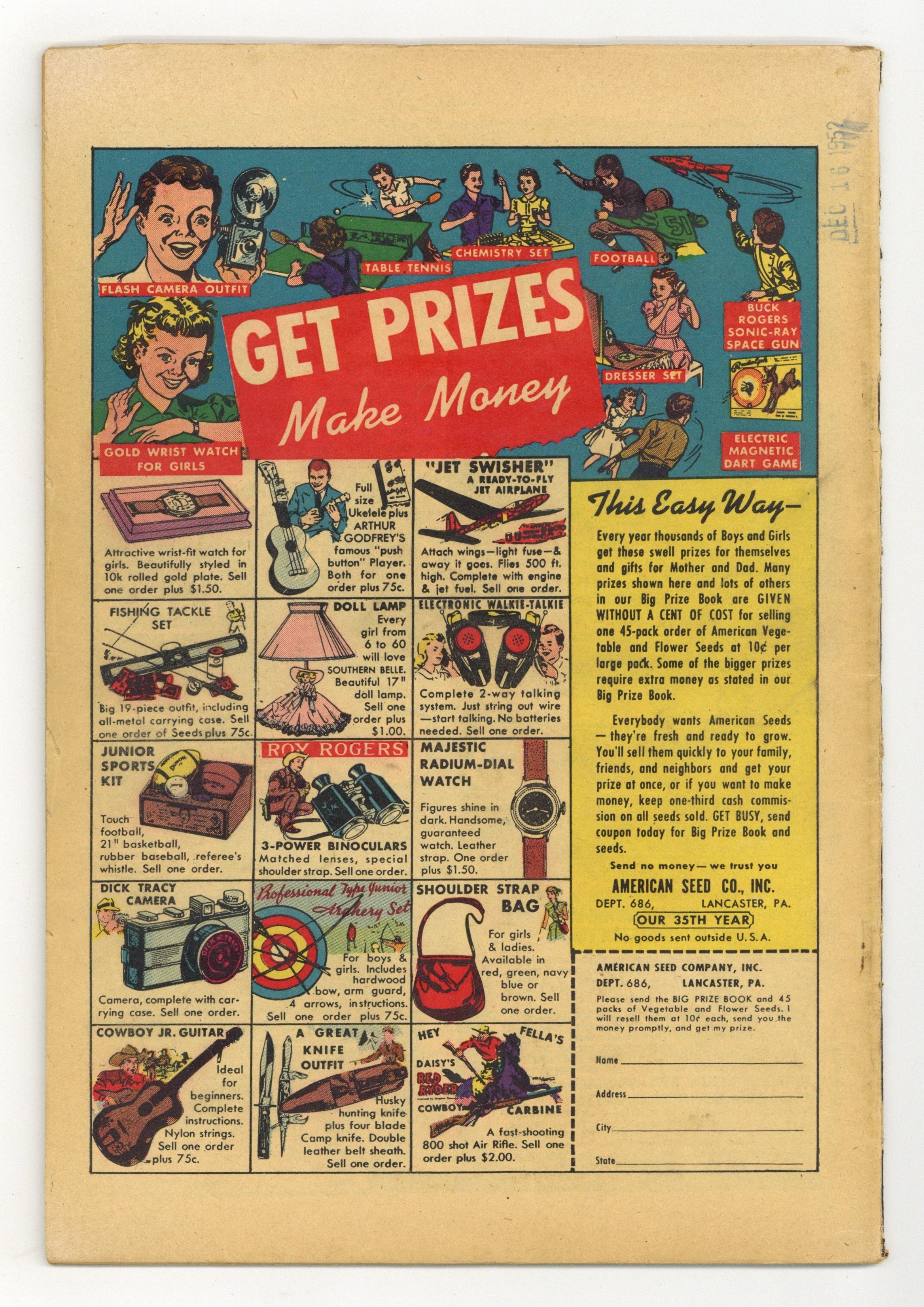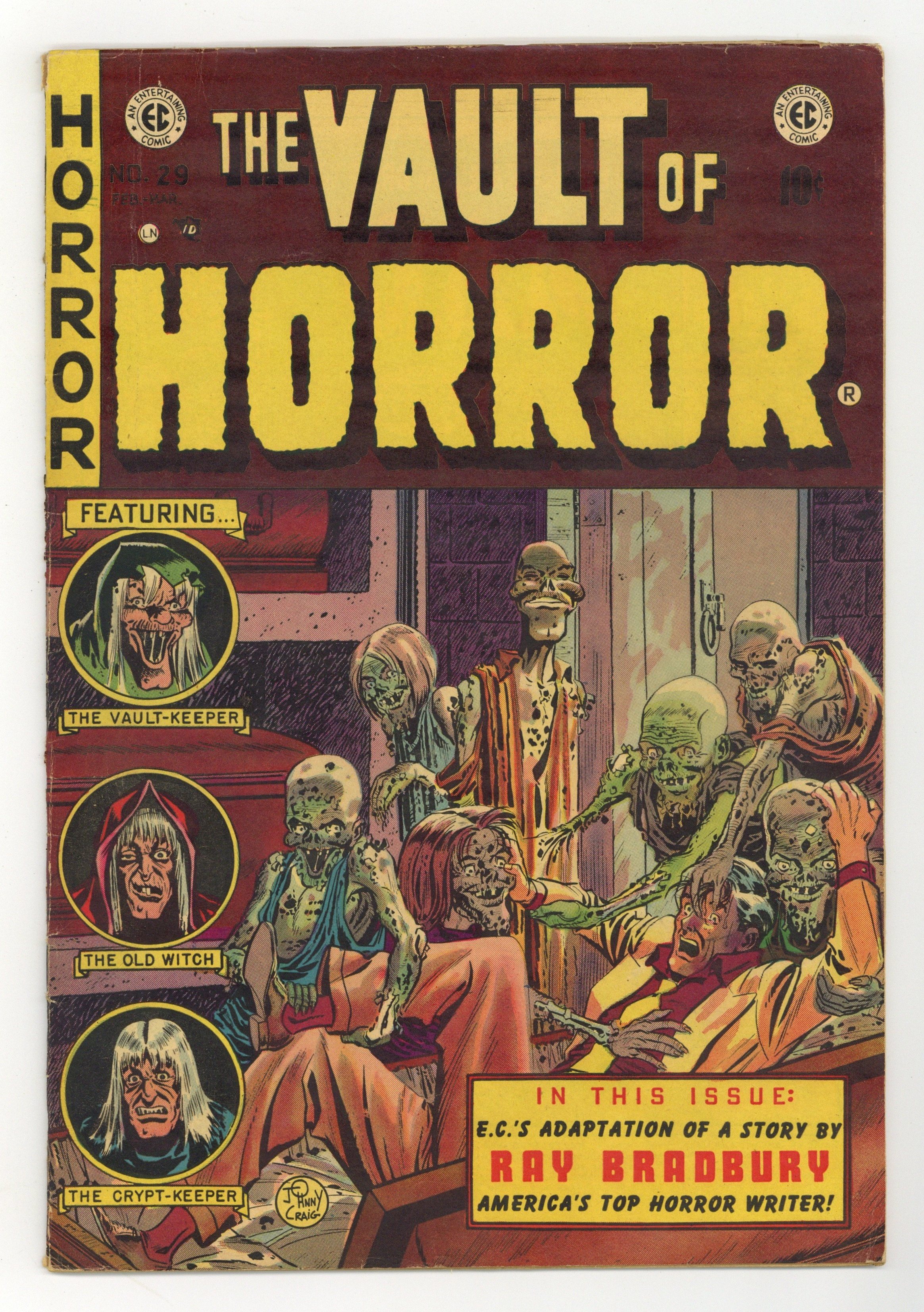 Cover by Johnny Craig. Ad for MAD magazine. "The Mausoleum!", script and art by Johnny Craig; Howard was admitted to the castle by its owner, Mr. Weatherby, to make an offer on the castle: to dismantle it and re-assemble it back in the states. "Let's Play Poison!", script by Ray Bradbury and Al Feldstein (adaptation), art by Jack Davis; Mr. Howard returned to his classroom in time to see some of his students corner a young boy, who then fell out of a window to his death. "Last Assignment" text story. "A Sock for Christmas," script by Al Feldstein and William M. Gaines, art by Jack Kamen; Long ago in a huge castle lived a King, his Queen and their only son, who was a real brat; The King decides to go into the village and forcibly take another young lad to be the Prince's companion. "Pickled Pints!", script by Bill Gaines (co-plot) and Albert B. Feldstein (co-plot, script), art by Graham Ingels; Cal and Warren offer bowery derelicts $10 a pop if they would be willing to donate a pint of blood, then then the two sell it to a legitimate blood bank for $30. 36 pgs., full color. $0.10. Cover price $0.10.