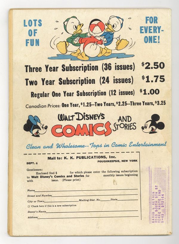 Tags: Disney Ducks & MicePublished Apr 1945 by Dell/Gold Key.$32.00- 1/2" cumulative spine split. Residue.