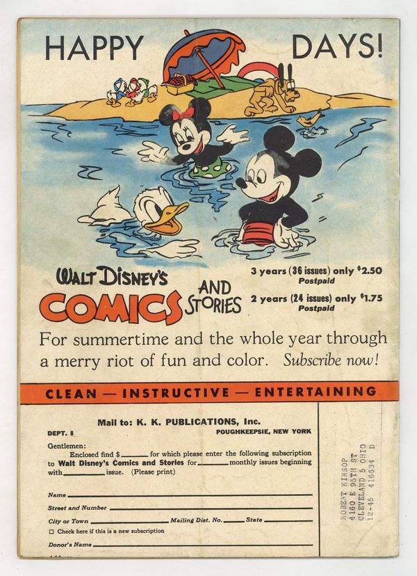 Tags: Disney Ducks & MicePublished Aug 1945 by Dell/Gold Key.$799.00- Paper: Off white to white