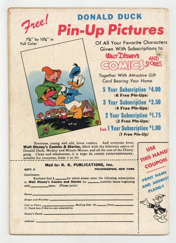 Tags: Disney Ducks & MicePublished Aug 1946 by Dell/Gold Key.$45.00- Cover oxidation. Interior tearing.