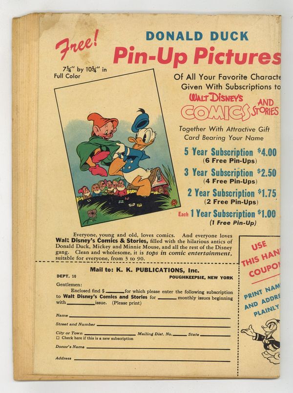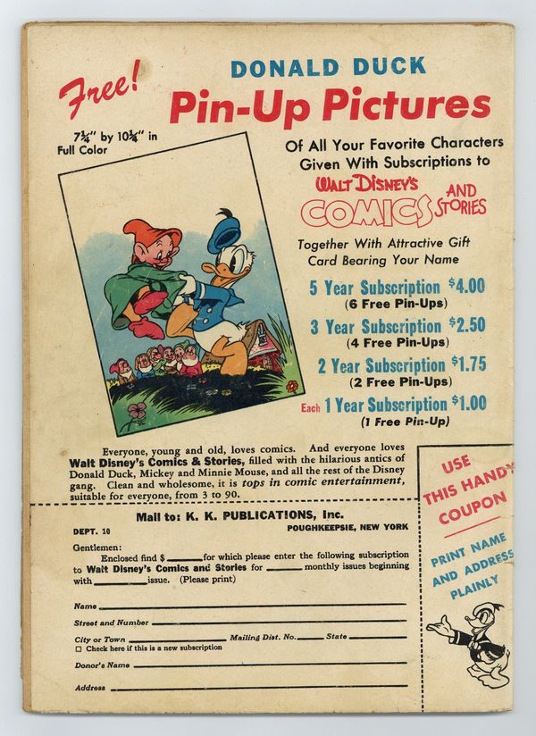 Tags: Disney Ducks & MicePublished Oct 1946 by Dell/Gold Key.$32.00- Centerfold detached at one staple. Imminent centerfold detachment.