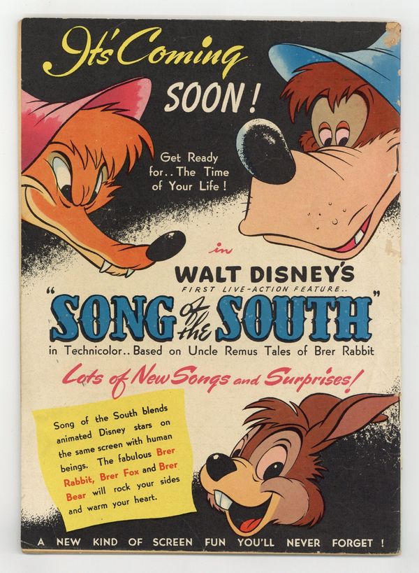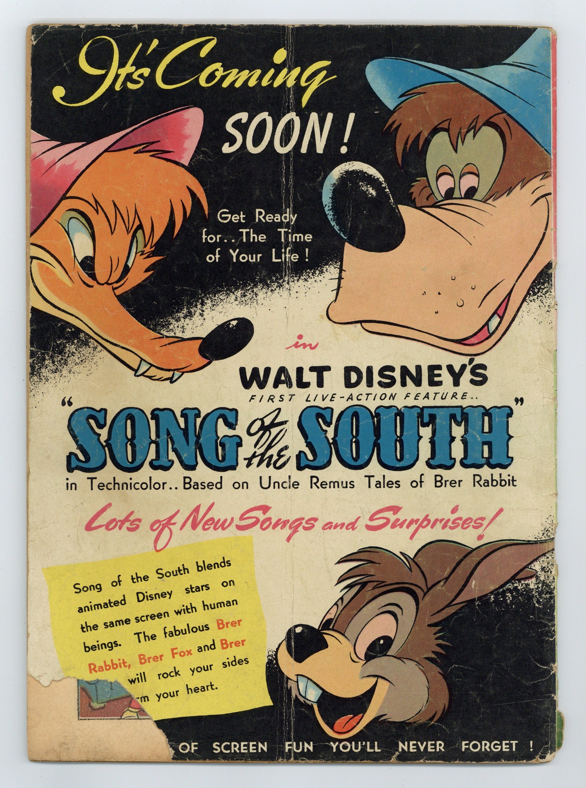 Cover by Walt Kelly. Stories and art by Carl Barks, Floyd Gottfredson, Bill Walsh, Bob Karp, Hubie Karp, Roger Armstrong, George Waiss, Bill Wright, and Al Taliaferro. Sometimes listed as Vol. 7 #5. The long-running vehicle for Disney character comics featured work by Carl Barks, Floyd Gottfredson, and Pogo's Walt Kelly. In a classic story from the Mickey Mouse comic strip, Mickey's new landlord wants to evict him. In a story by Barks, Donald's nephews go to great lengths to convince Donald that his homemade bug spray creates giant bugs. Bucky Bug gets help from Santa when a discarded Christmas tree threatens to crush the town. Donald Duck; Bucky Bug; Li'l Bad Wolf; Mickey Mouse; Goofy: The Big Wash; Br'er Rabbit; The New Idea; Straight Shooters; Mickey Mouse: Eviction. 48 pages, Full Color. Cover price $0.10.