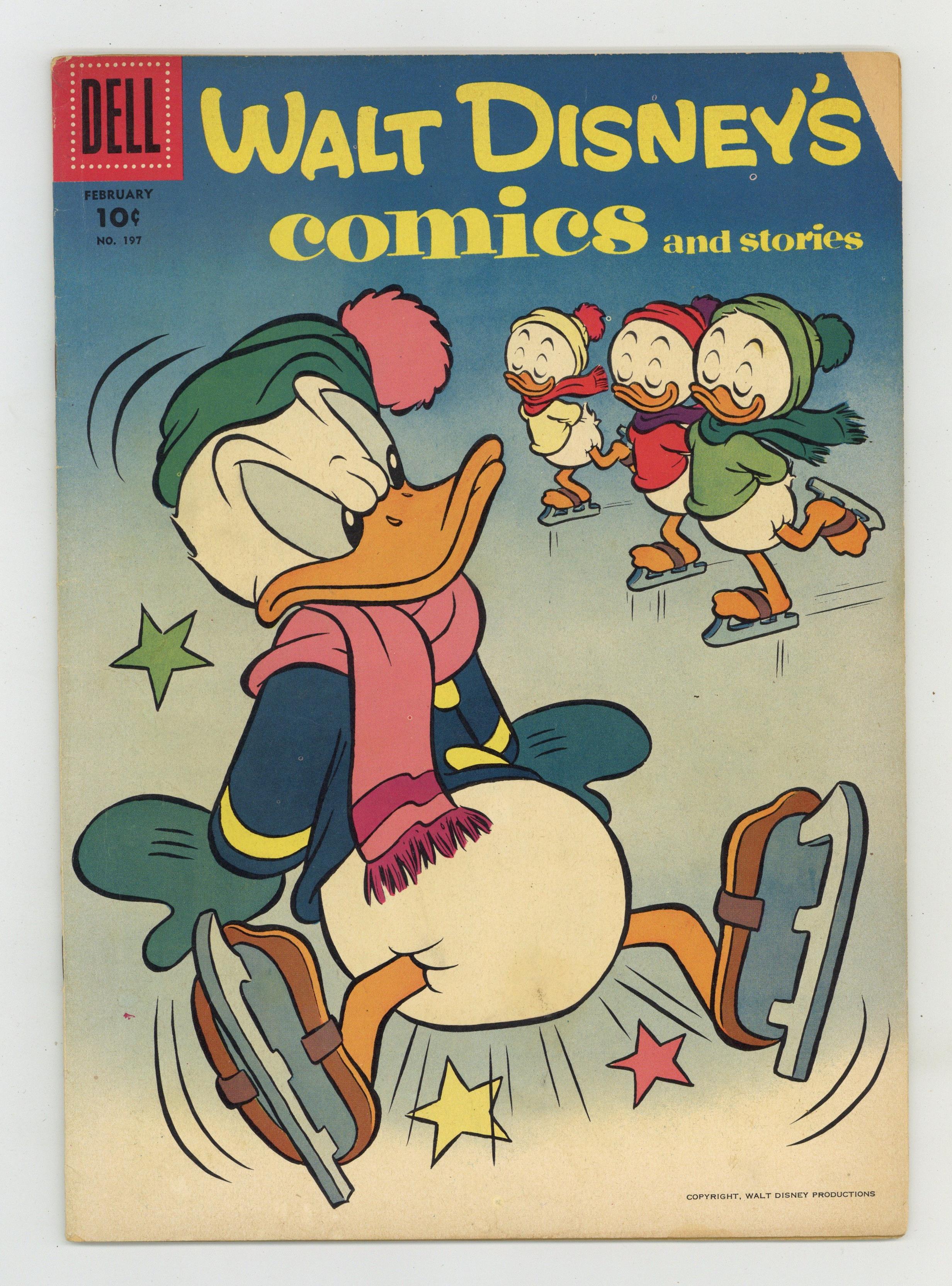 Tags: Disney Ducks & MicePublished Feb 1957 by Dell/Gold Key.$2.9010¢ Edition. Cover by Paul Murry. Stories and art by Carl Barks, Don Christensen, Carl Fallberg, Paul Murry, Gil Turner, Bob Karp, and Al Taliaferro. Sometimes listed as Vol. 17 #5. The long-running vehicle for Disney character comics featured art by Carl Barks, the legendary Good Duck Artist. Seeking a lost horse, Mickey and Goofy stumble on mysterious Loon Lake. In a story by Barks, Donald joins the border patrol and encounters parakeet smugglers. The Big Bad Wolf tries to keep his New Year's resolution to stop hunting the Three Little Pigs. Donald Duck; Li'l Bad Wolf; Pluto; The Winter Serenade; Mickey Mouse: The Legend of Loon Lake. 32 pages, Full Color. Cover price $0.10.