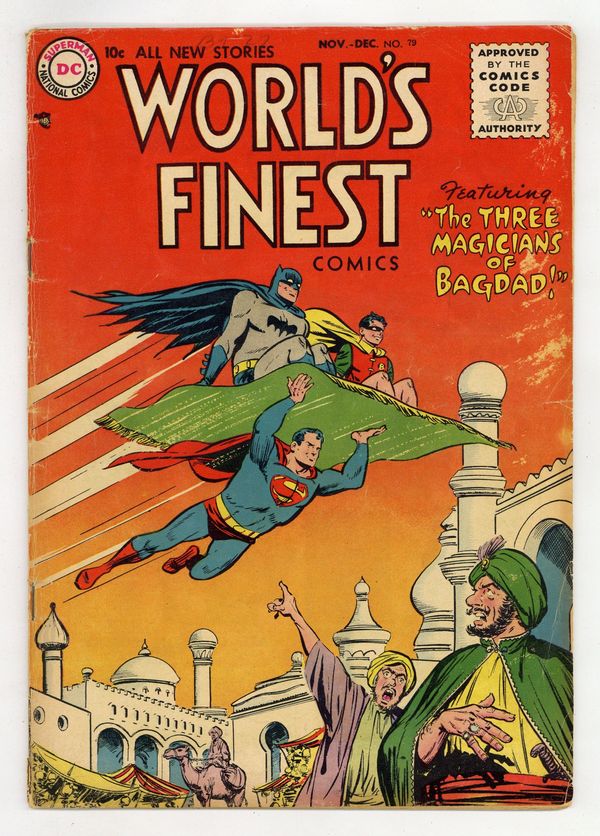 Cover art by Winslow Mortimer. The Three Magicians of Baghdad, script by Edmond Hamilton, pencils by Dick Sprang, inks by Stan Kaye; Batman and Robin are sent into the past by Dr. Nichols, but he is unable to return them to the present; He calls upon Superman to help him, so Superman travels to the past to meet Batman and Robin. Together, they help Aladdin by having Superman pose as the genii in Aladdin's lamp. Little Pete humor page by Henry Boltinoff. Archer From Across the Sea starring Green Arrow, script by George Kashdan, art by George Papp. Do You Know Your Neighbors public service announcement starring Buzzy, script by Jack Schiff, art by Win Mortimer. How To Train A Dog text article. Weapon of Peace starring Tomahawk, script by Ed Herron, pencils by Bruno Premiani, inks by Ray Burnley. Sagebrush Sam humor page by Henry Boltinoff. 36 Pages, Full Color. Cover price $0.10.