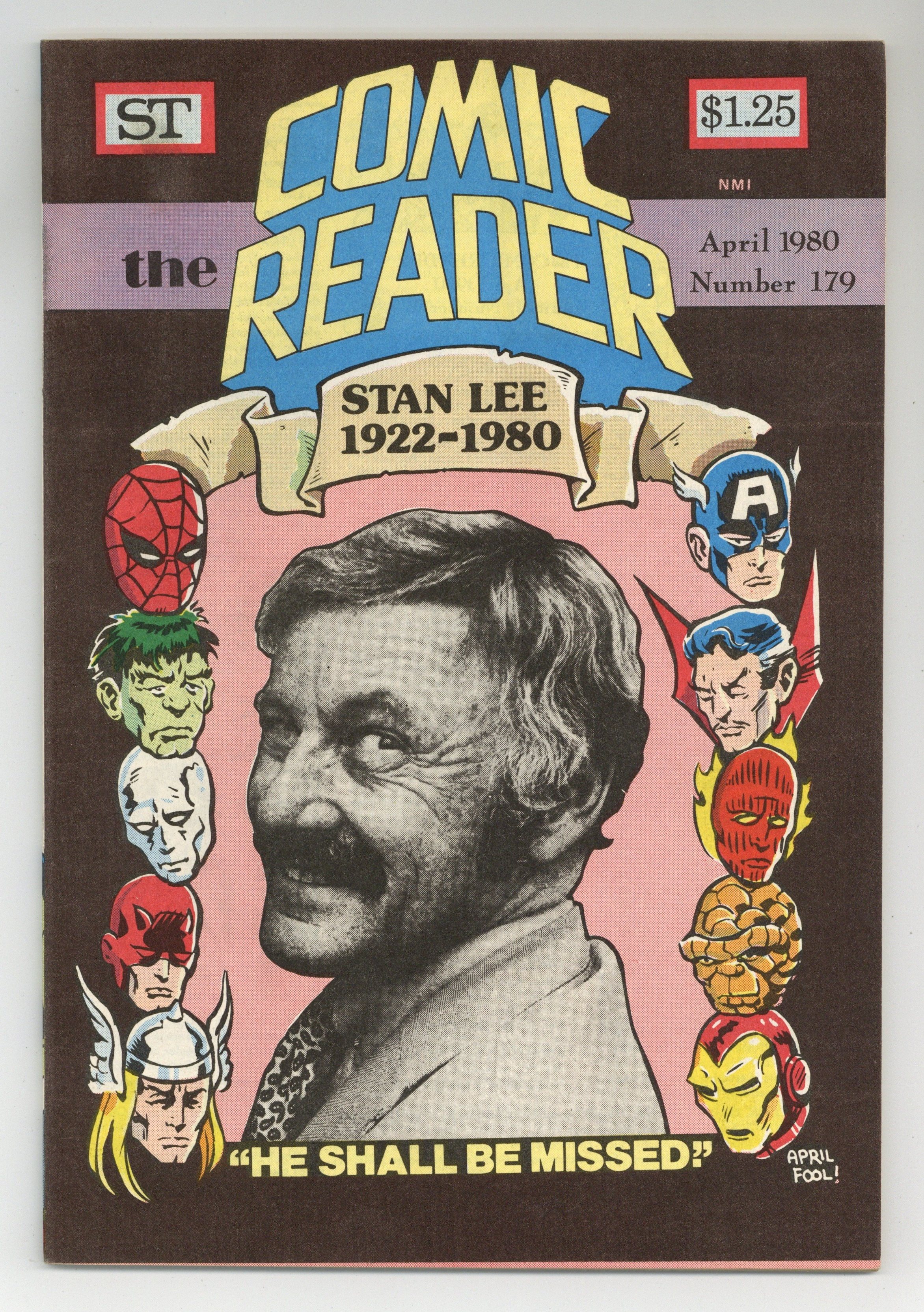 The Seekers dailies by John Burns reprinted; 1940s Superman dailies; Star Hawks by Ron Goulart & Gil Kane. April Fool's Day cover announcing the death of Stan Lee. Cover price $1.50.