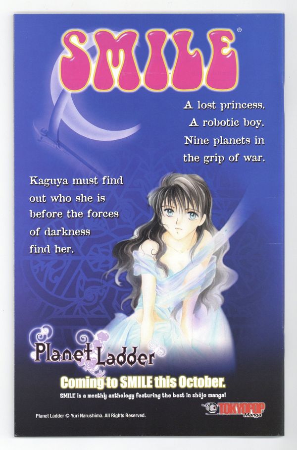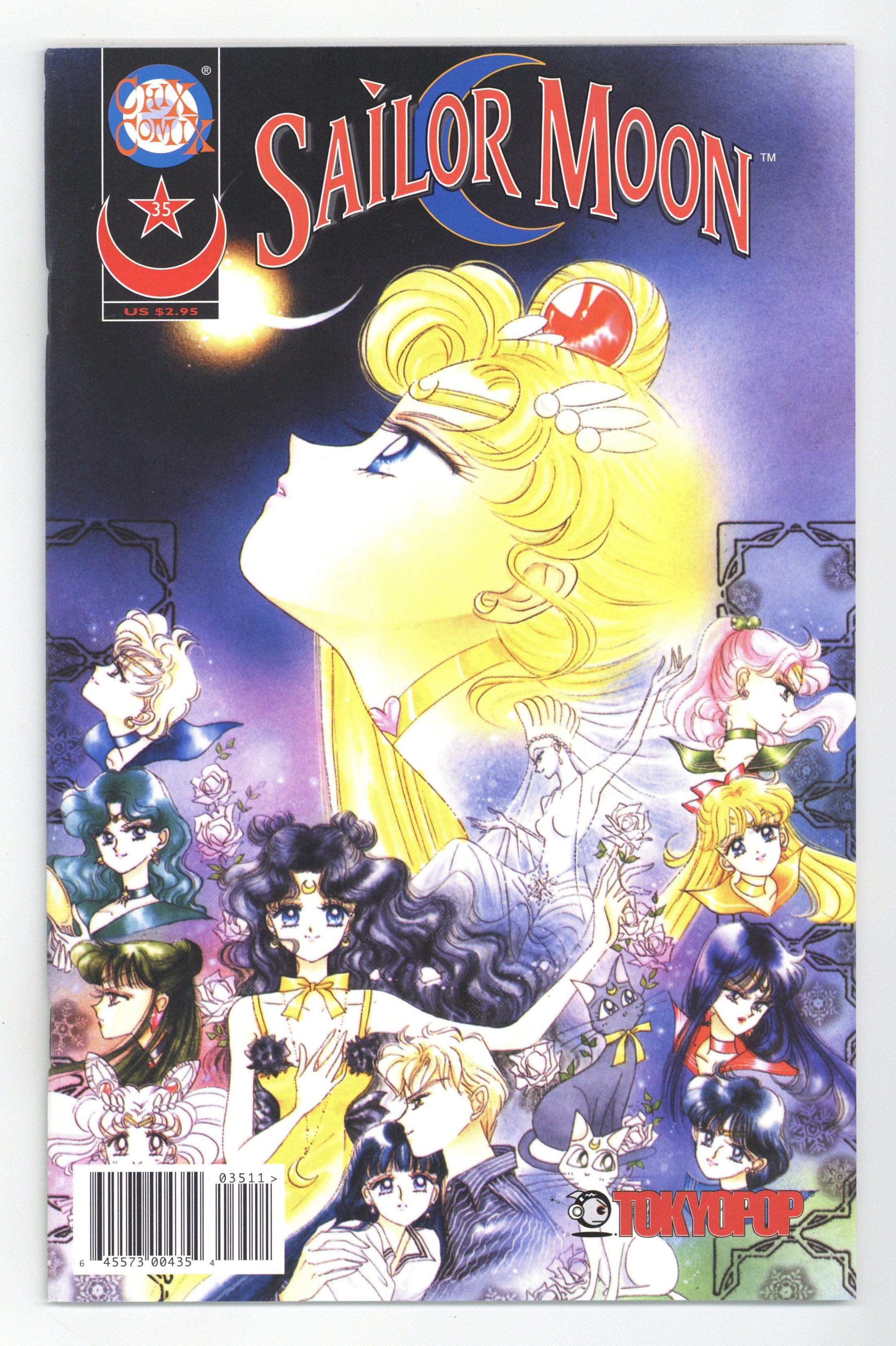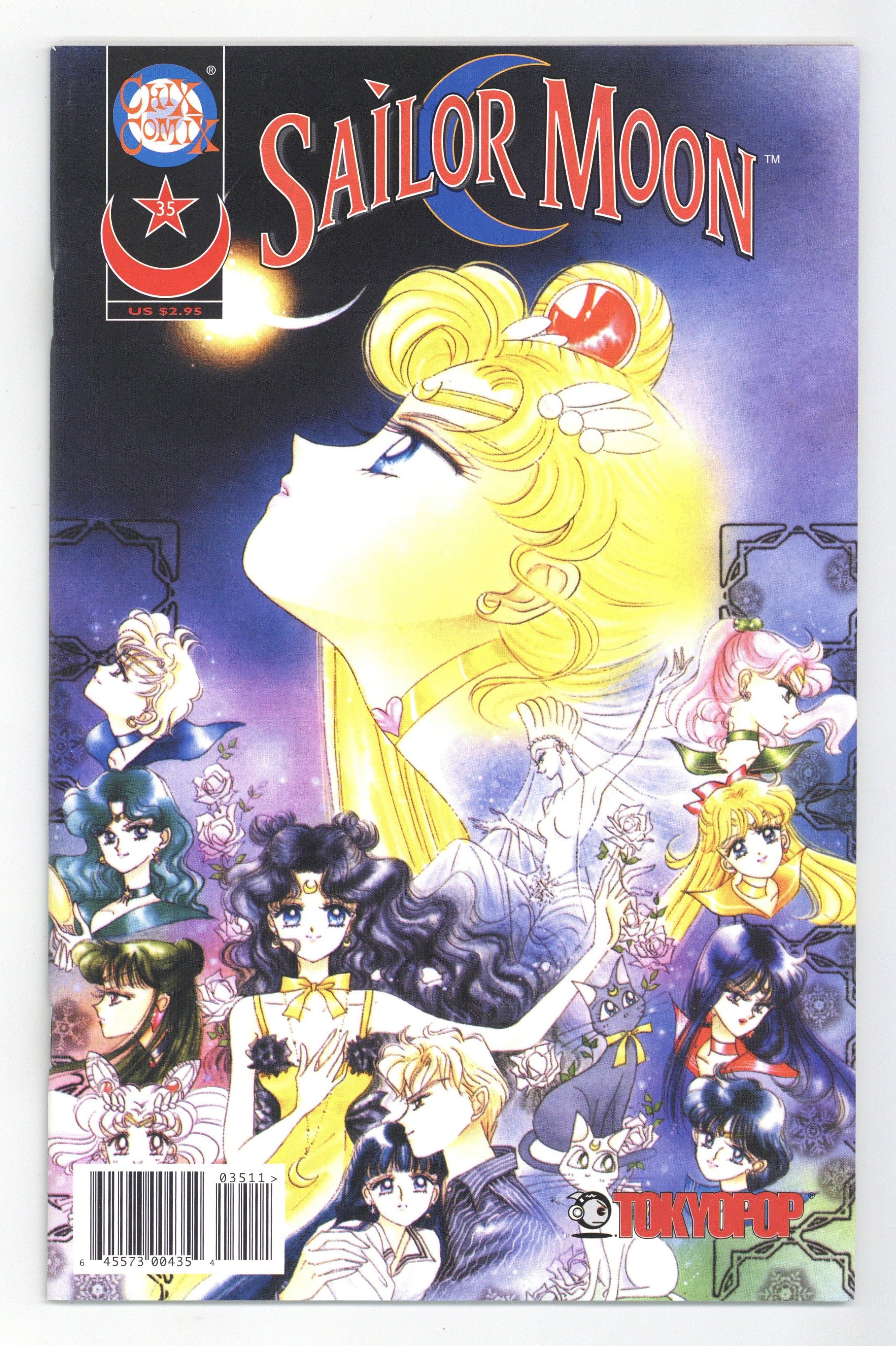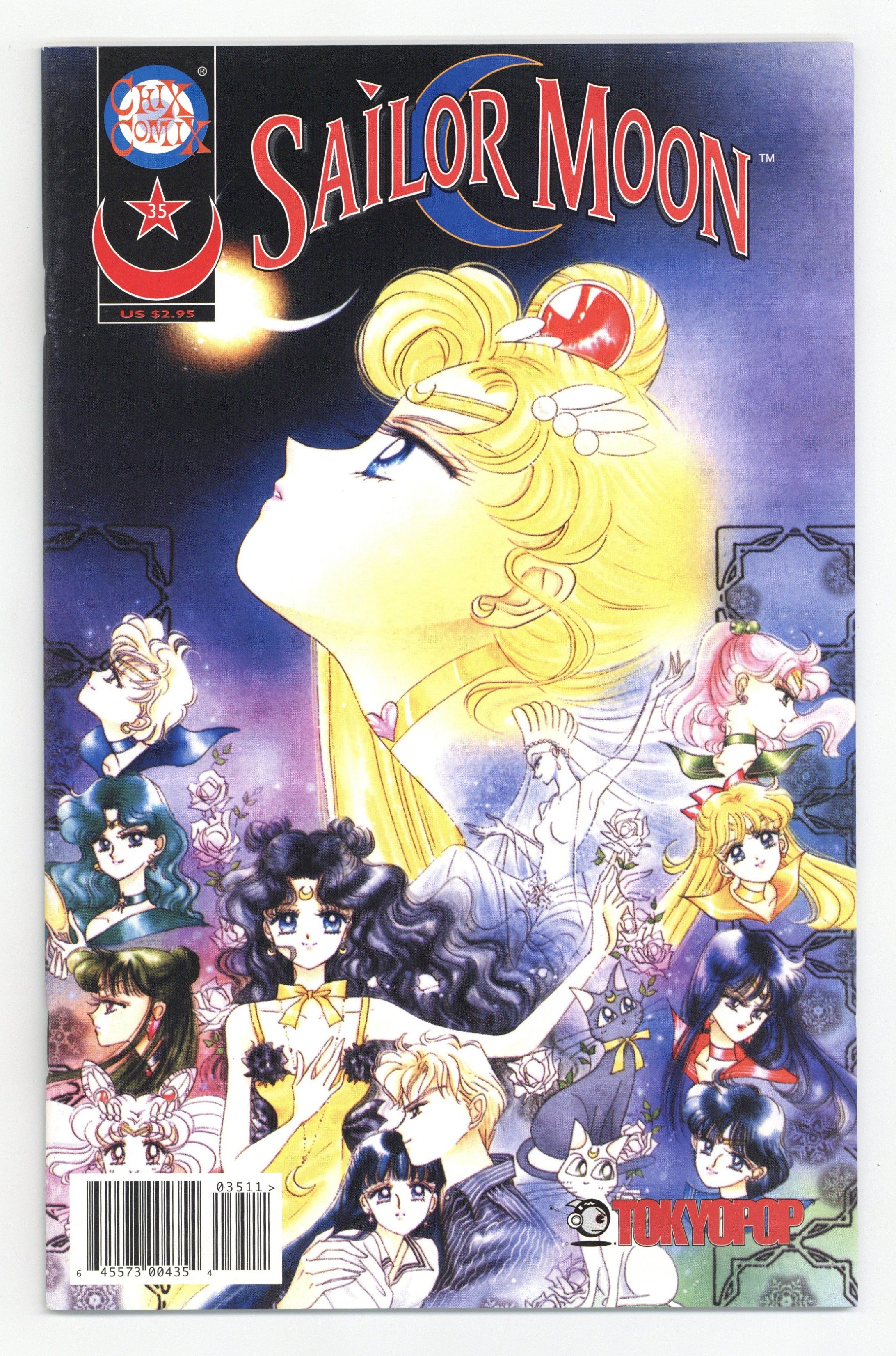 Story and Art by Naoko Takeuchi. Naoko Takeuchi pens a brief note commemorating the end of the Sailor Moon series and thanking her readers. Luna's Wish Upon A Star, script by Naoko Takeuchi and Anita Sengupta, art by Naoko Takeuchi and Roselyn Santos; Sailor Moon, the inner and the outer senshi and Sailor Chibi-Moon all battle to hold back Princess Snow Kaguya and her minions; Meanwhile Luna, with some last minute help from Sailor Moon's Silver Crystal, struggles to keep Kakeru from giving up. Naoko Takeuchi writes about the production of the second Sailor Moon movie, "Princess Kaguya's Lover", and the serialization based on the film that appeared in Nakayoshi magazine; She also shares some of her production sketches from the undertaking. 52 pgs., full color. Cover price $2.95.