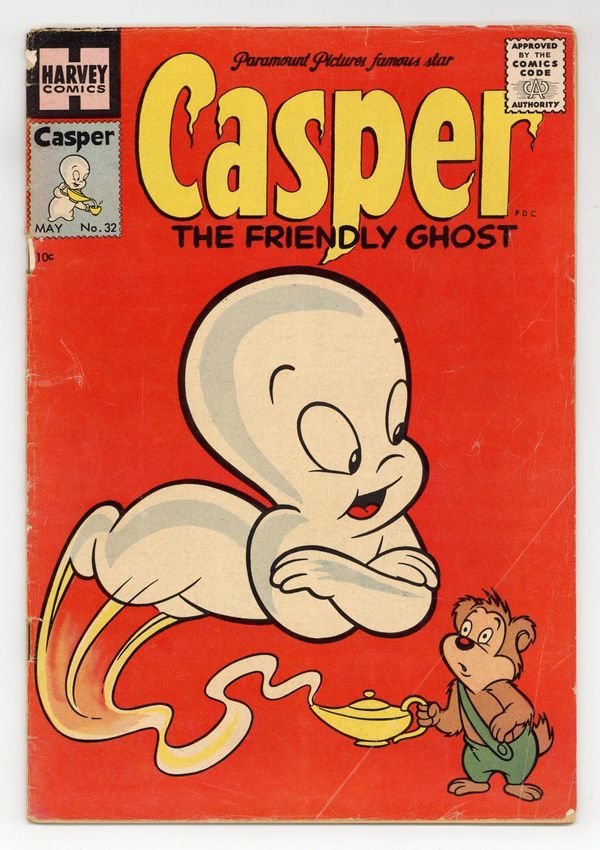 Stories and art by Warren Kremer and others. The well-meaning but misunderstood Casper becomes one of Harvey Comics' best-known stars. Casper works as a substitute genie after scaring the real genie away. But things get out of hand when a crook steals the magic lamp. Then Spooky finds the genie, but he's never heard the expression "Be careful what you wish for." Plus a vintage ad for Wildroot Cream-Oil featuring Fearless Fosdick (with art by Al Capp). Casper the Friendly Ghost; The Magic Lamp; Spooky; Save-ty First; Casper Genie; Gosh Oh Genie; Spooky: Hat Happy. 36 pages, four color. Cover price $0.10.