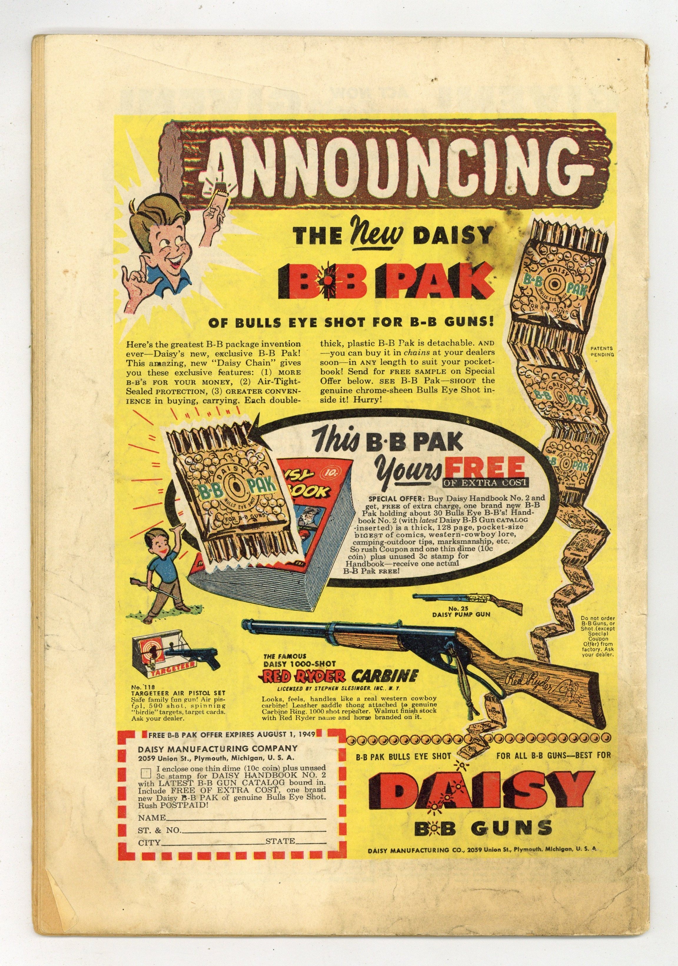 Published May 1949 by Better Publications.$25.00- 2" cumulative spine split. Tracing on front cover. Puncture damage.