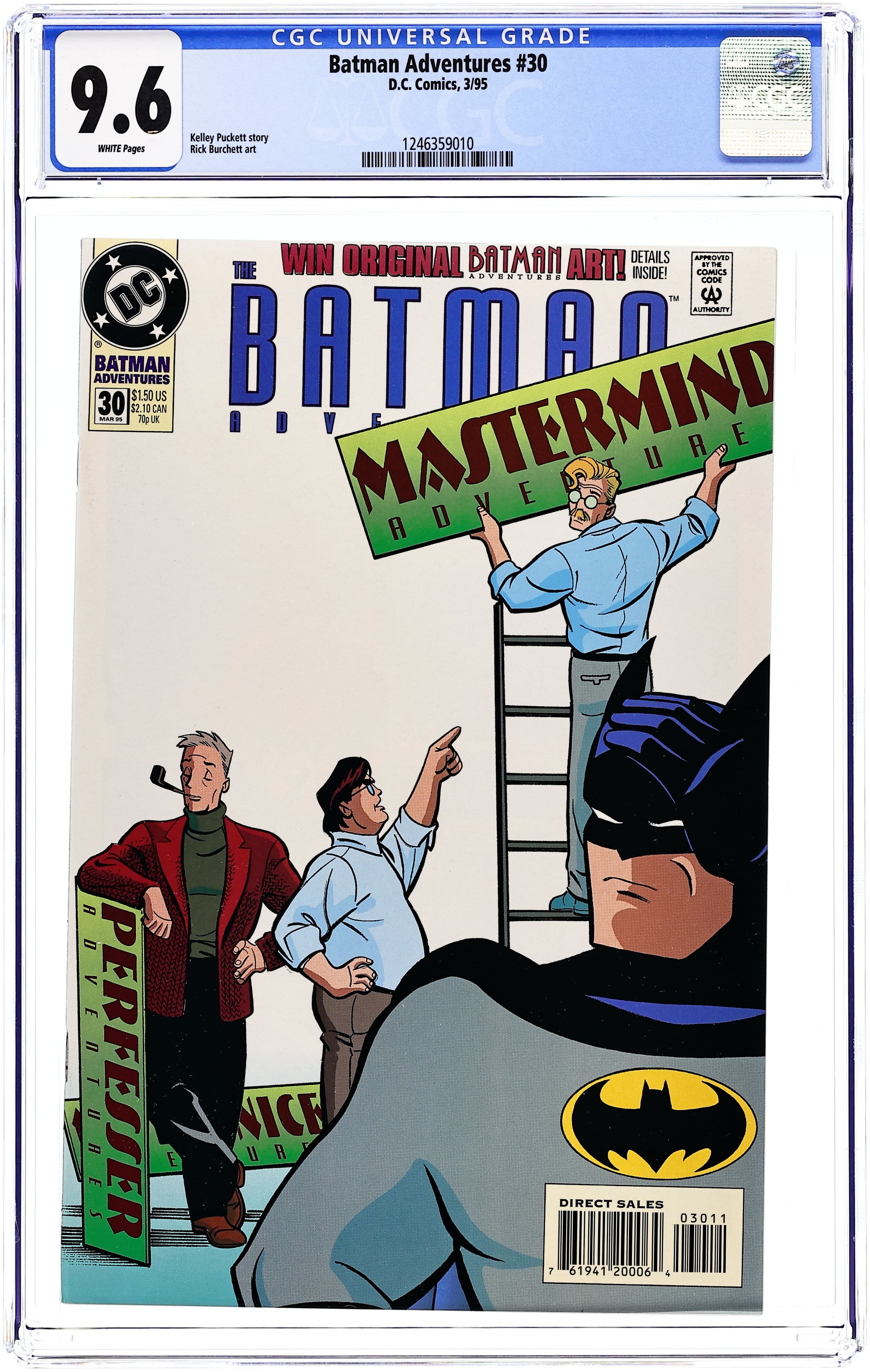 "Natural Born Loser." This issue, which has Marty trying to the get the Great Pearl Treasure, features the origins of Perfesser, Mastermind, and Mr. Nice. Based on Batman The Animated Series. Script by Kelley Puckett. Art by Rick Burchett. Cover by Rick Burchett? Cover price $1.50.
