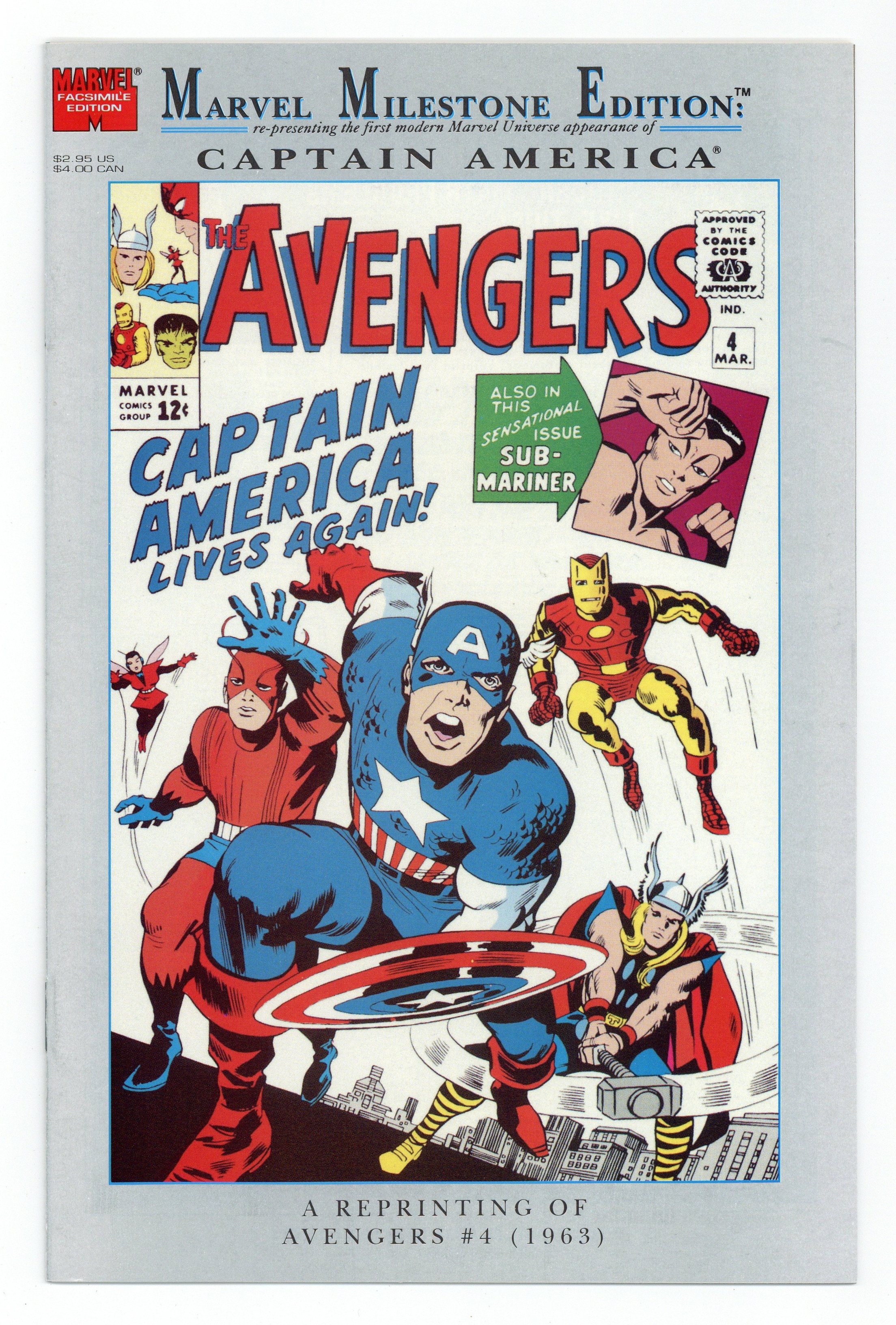 Reprints Avengers #4 (revival of Captain America); Jack Kirby art Cover price $2.95.