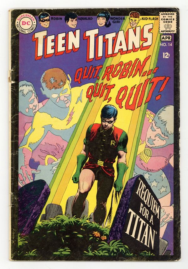 Written by Bob Haney. Art and cover by Nick Cardy. With three Titans under the control of The Gargoyle, Robin must stand alone. 36 Pages, Full Color. Cover price $0.12.
