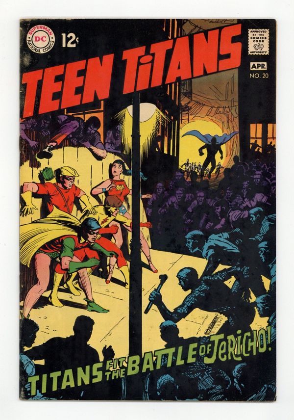 Written by Neal Adams. Art by Neal Adams, Sal Amendola, and Nick Cardy. Cover by Nick Cardy. The superhero Joshua breaks into Teen Titans headquarters to get the Titans to help him stop a group of teen-agers who have been unwittingly tricked into helping aliens initiate "Operation Jericho".36 pages, full color. $0.12. Fact File #4 article about the history of the Vigilante. 36 Pages, Full Color. Cover price $0.12.