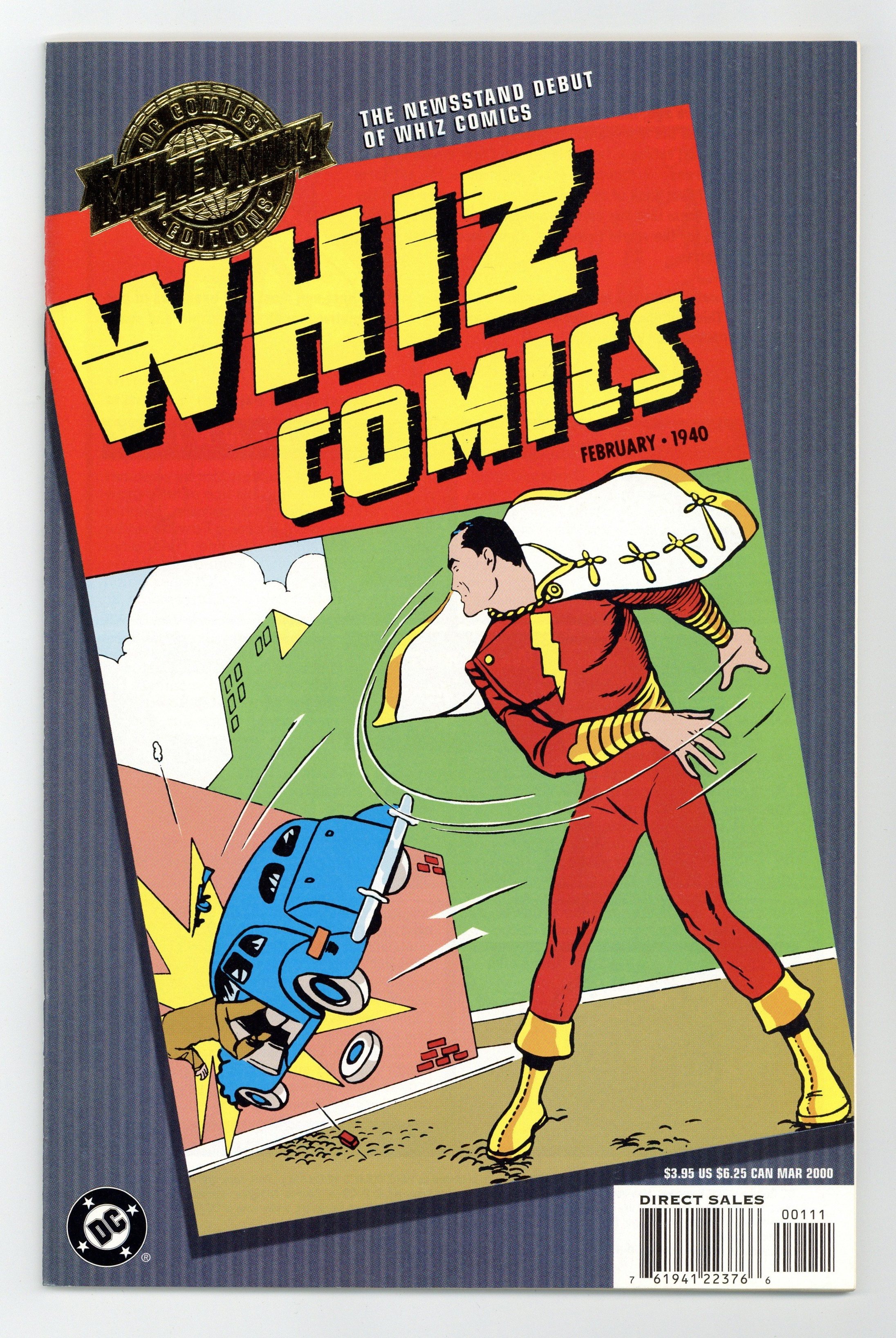 Tags: Millennium Editions, Reprint$2.65WRITTEN BY BILL PARKER AND VARIOUS; ART BY C.C. BECK AND VARIOUS. The original Captain Marvel, the wizard Shazam and villainous mad scientist Sivana were introduced in this 1940 issue from Fawcett Publications, which also featured the debut of Spy Smasher, Ibis the Invincible and other notable Golden Age characters. FC, 64 PG." Cover price $3.95.