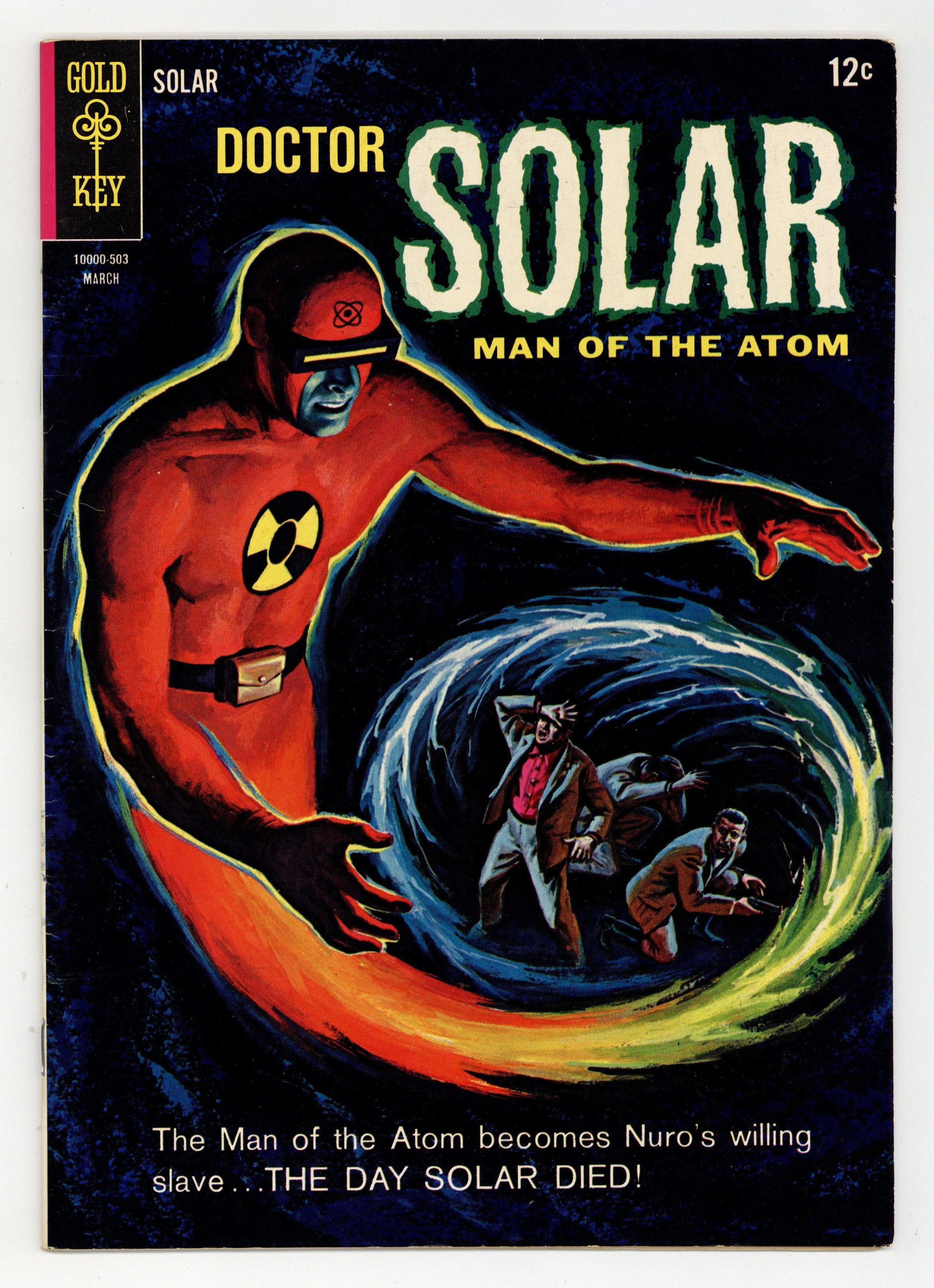 Dr. Solar in "The Day Solar Died!" and Professor Harbinger in "The Shimmering Earth!" Letter to the editor from comics writer Mike Friedrich. Statement of ownership--average print run 390,135; average paid circulation 246,666. Painted front cover. Number on cover 10000-503 March. Cover price $0.12.