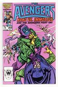 Direct Edition. "The Once and Future Kang!" Part 3 of 3. Script by Roger Stern. Art by John Buscema (breakdowns) and Tom Palmer (finishes). Cover by John Buscema and Tom Palmer. In timeless limbo Earth's Mightiest Heroes and their long-time foe, Kang the Conqueror, are captives of the chief council Kang! However, the Lion of Olympus cannot be held for long in a simple paralysis beam! When Hercules breaks free, chaos breaks loose! The Avengers assemble to battle the chief council Kang, while the 41st century Kang also attacks his Kang-brother! Confusing indeed! But in the land of limbo things are seldom what they seem. And eventually the true orchestrator of events is revealed! With Ravonna by his side, Immortus stops the fighting and makes everything all right. Or does he? The Avengers aren't so sure, but of course only time will tell. Flashback cameos by the Fantastic Four, Doctor Doom, and the Pharaoh Rama-Tut. Avengers Lineup: Black Knight, Captain America, Captain Marvel, Hercules, Sub-Mariner, and the Wasp. (Notes: Immortus appears next in Avengers West Coast 48. The significance of this three-part story was the return of Kang the Conqueror as a major villain for the Avengers. This issue sets the stage for many great future encounters.) 36 pages Cover price $0.75.