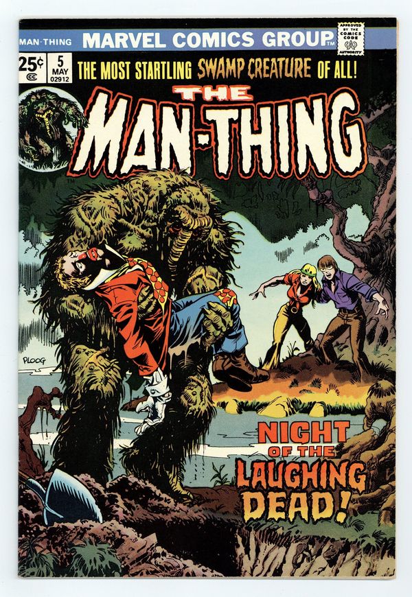 $45.00"Night of the Laughing Dead!" Written by Steve Gerber. Art by Mike Ploog and Frank Chiaramonte. The Man-Thing and his companions face the sinister assault of a spectral fiend. Includes Marvel Value Stamp. 32 pages, FC. Cover price $0.25.