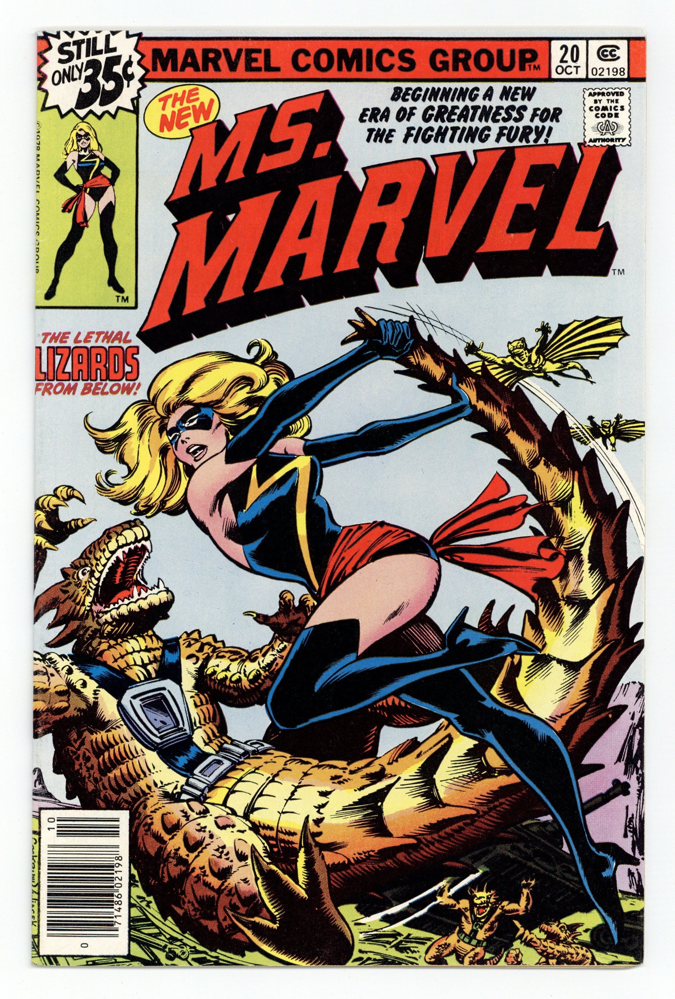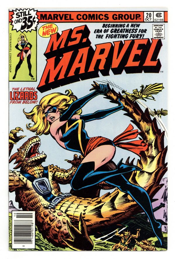 Dave Cockrum and Bob Wiacek cover and art. Chris Claremont script. "The All-New Ms. Marvel" Ms. Marvel gets a new costume and battles the Lizard People. Cover price $0.35.