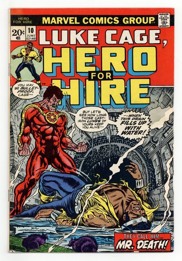 "The Lucky and the Dead!" Script by Steve Englehart, pencils by George Tuska, inks by Billy Graham. "Muerte" means "Death" in Spanish. Luke Cage comes face-to-face with the man called Senor Muerte. This is a man who cannot be stopped, not even by the diamond-hard fists of Power Man. Graham cover. Cover price $0.20.