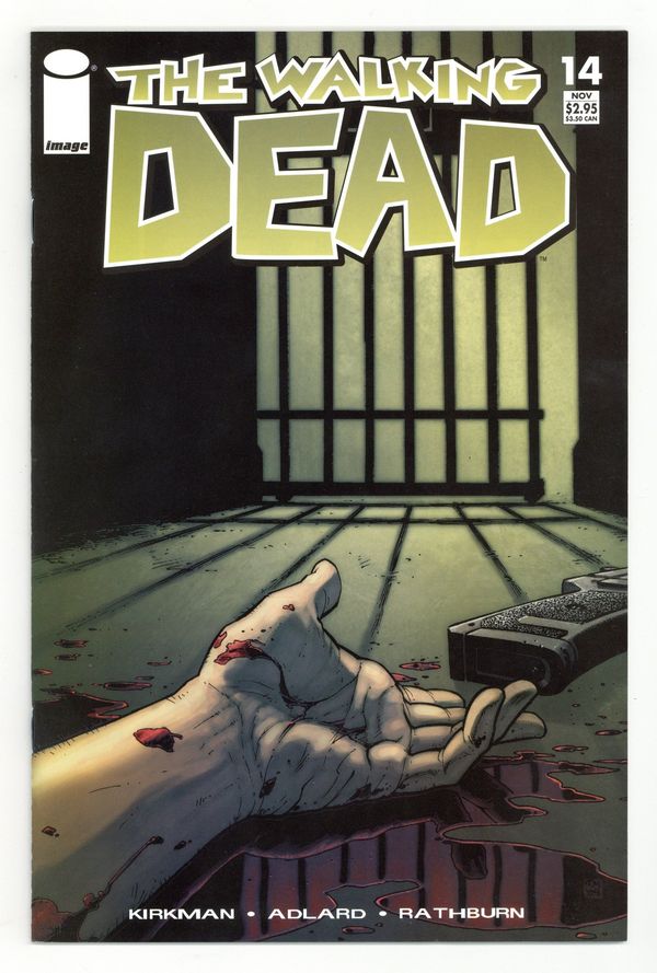 $28.00Black & white/32 pages MATURE AUDIENCES WARNING written by ROBERT KIRKMAN art by CHARLIE ADLARD cover by TONY MOORE CONCEPT: An epidemic of apocalyptic proportions has swept the globe, causing the dead to rise and feed on the living. In a matter of months society has crumbled: There is no government, no grocery stores, no mail delivery, no cable TV. In a world ruled by the dead, we are forced to finally begin living. THIS ISSUE: The epic tale of survival continues. With the zombies cleared out, Rick and crew settle into their new home. It's everything they knew it would be: secure, safe and stocked with everything they need. Now, for the first time in a long time, they can finally relax... or can they? Cover price $2.95.