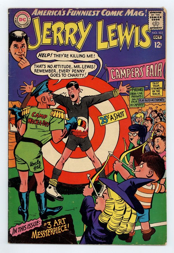 The Hound Dog from Mars - Written by Arnold Drake. Art and Cover by Neal Adams. Also starring Renfrew, Witch Kraft, Zanyia and Uncle Hal. Cameo by The Beatles. Plus: A Letter from Jerry. Also: Cap's Hobby Hints untitled activity half-pager by Henry Boltinoff. And: The Jerry Lewis Gallery of Art Messterpieces #3: Whistler's Mother illo by Neal Adams. 32 pages, full color. Cover price $0.12.
