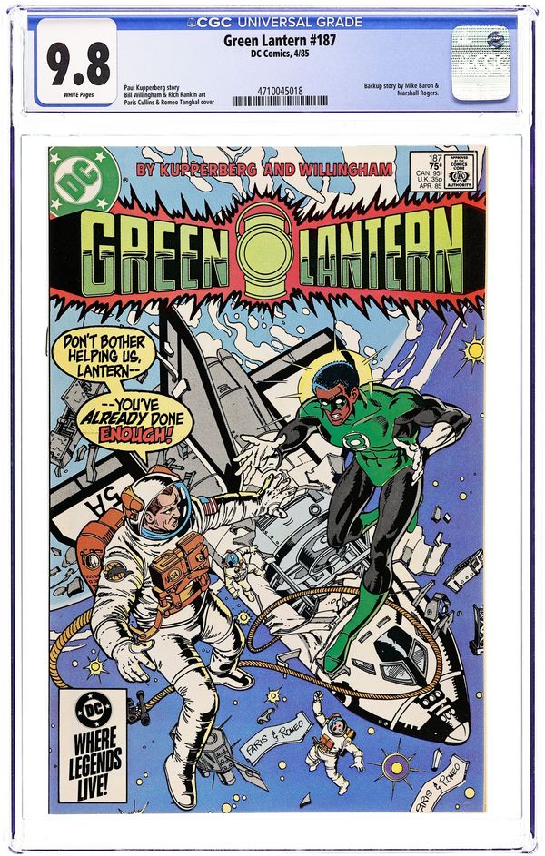 "A Day in his Life." John "Green Lantern" Stewart tries to rescue a space shuttle (and looks bad doing it) while the Predator beats up Hal Jordan. Script by Paul Kupperberg, pencils by Bill Willingham, inks by Rich Rankin. "Forever Blowing Bubbles." An invading warlord further complicates the life of a Green Lantern who is a mother and a glassblower in this Tales of the Green Lantern Corps story. Script by Mike Baron, art by Marshall Rogers. Cover by Paris Cullens and Romeo Tanghal. Cover price $0.75.