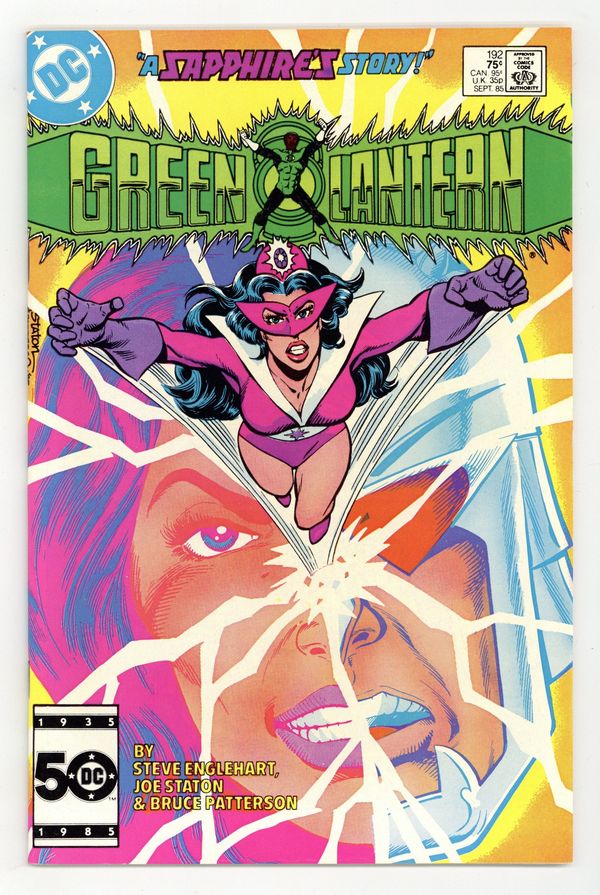 "First Star I See Tonight." The Zamarons summon Star Sapphire (who tells her origin to Hal Jordan) back to their world, where John Stewart, Katma Tui, and Dalor await. Script by Steve Englehart, pencils by Joe Staton, inks by Bruce Patterson. Cover by Staton and Patterson. Cover price $0.75.