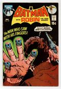 Cover by Neal Adams. "Blind Rage of the Ten-Eyed Man!", script by Frank Robbins, pencils by Irv Novick, inks by Dick Giordano; The Ten-Eyed Man continues waging his war against Batman, and he hijacks an airplane, luring the Dark Knight into a battle in trap-ridden jungle; Batman takes "Ten-Eyed" Reardon back to America. "Wiped Out!", script by Mike Friedrich, pencils by Irv Novick, inks by Dick Giordano; When Dick Grayson and Terri Bergstrom's apartments are burglarized, Robin tracks down the criminals. 36 Pages, Full Color. Cover price $0.15.