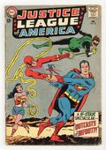 $13.00Cover pencils by Mike Sekowsky, inks by Murphy Anderson. Outcasts of Infinity!, script by Gardner Fox, pencils by Mike Sekowsky, inks by Bernard Sachs; The JLA learns of the plight of three Sfarlian scientists who are transported from one world to another, and soon after they leave, the planet they left explodes; The JLAers accompany the Sfarlians and eventually arrive on the home world of the being using the energy created by the Sfarlians to power his weapons, Kraad. There, all the JLAers but the Atom are disintegrated; The Atom uses Green Lantern's ring to reintegrate the Leaguers, and though he scrambles the men's upper and lower halves, they manage to defeat Kraad. Special Christmas Quiz -- "Christmas in Many Lands!", script by Jack Schiff, art by Ruben Moriera. Satellite...Moon article by Julius Schwartz. Science says you're wrong if you believe that – article by Julius Schwartz. 36 pgs. $0.12. Cover price $0.12.