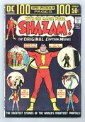 Tags: DC 100 Page Giant$32.00100-page giant; all reprints. "A Twice-Told Tale" (from Captain Marvel Adventures 80 in 1947), "The Original Captain Marvel Introduces Mary Marvel" (from CMA 18 in 1942; script by Otto Binder), "The Mighty Marvels Join Forces" (from Marvel Family 1 in 1945), "Captain Marvel Jr. and the Vest Pocket Levitator" (from Captain Marvel Junior 14 in 1943; art by Mac Raboy), "Mary Marvel and the Dog-Nappers" (from Mary Marvel 17 in 1947; art by Jack Binder), "The Original Captain Marvel and his Three Lieutenant Marvels in the Adventure in Time" (from CMA 71 in 1947), "The Talking Tiger" (from CMA 79 in 1947; script by Binder, art by C.C. Beck), and "The Return of Mr. Tawny" (from CMA 82 in 1948). New Beck cover. Cover price $0.50.