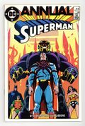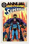 $52.00Direct Edition. "For the Man Who Has Everything!" Guest-starring Wonder Woman, and Batman and Robin. Written by Alan Moore. Art by Dave Gibbons. The amazing creative team that brought you Watchmen deliver one of the all-time great Superman tales. When Batman and Wonder Woman arrive at the Fortress of Solitude for Superman's birthday, they soon discover the evil Mongul has beat them there and enslaved the Man of Steel within a prison of his own mind. How can they possibly hope to defeat this monstrous alien menace without the help of Superman? 48 pages, FC. Cover price $1.25.